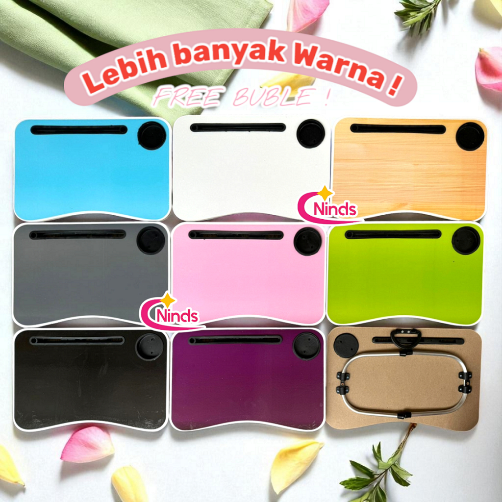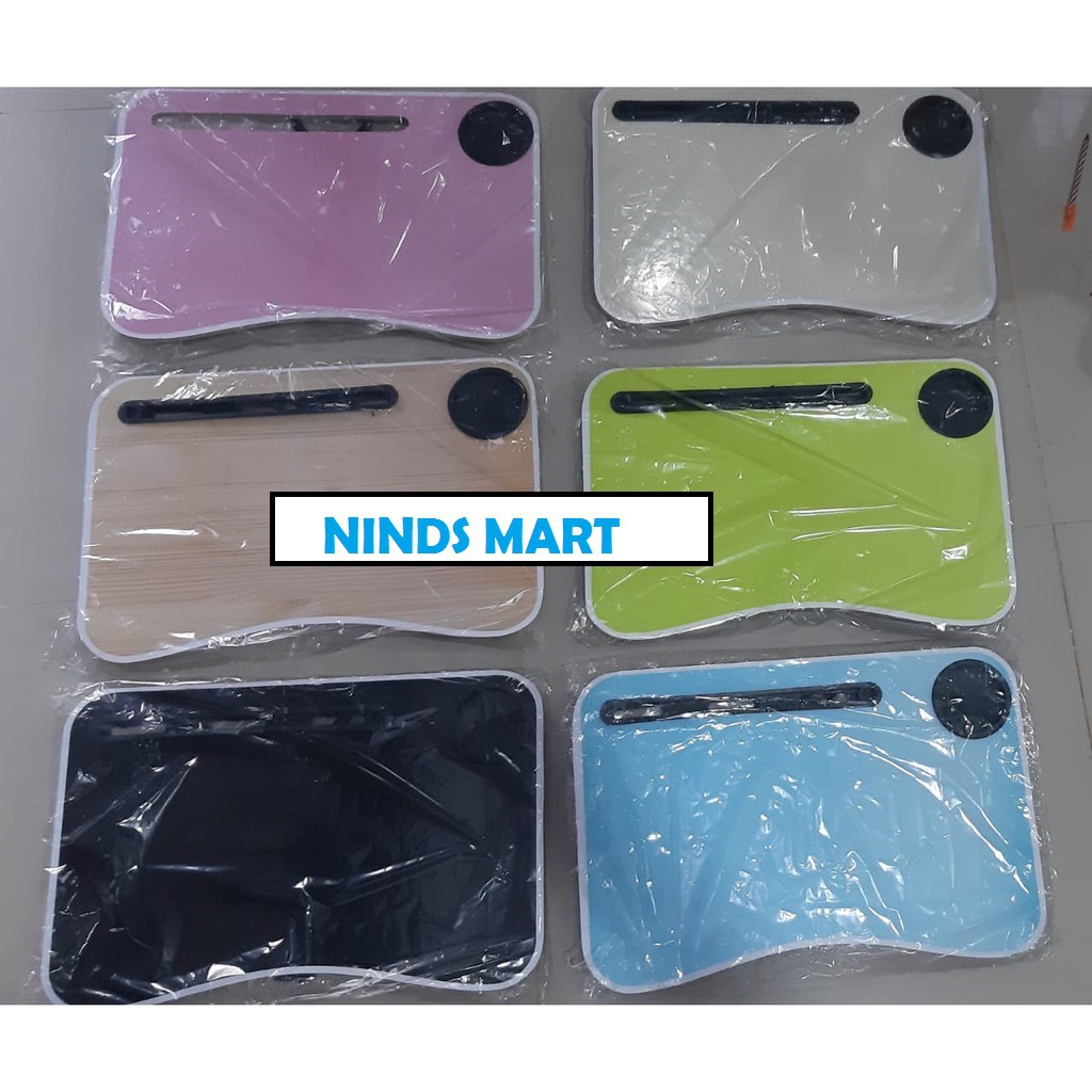 MEJA LAPTOP / MEJA BELAJAR LIPAT LAPTOP DAN TEMPAT GELAS POLOS / TANPA MOTIF