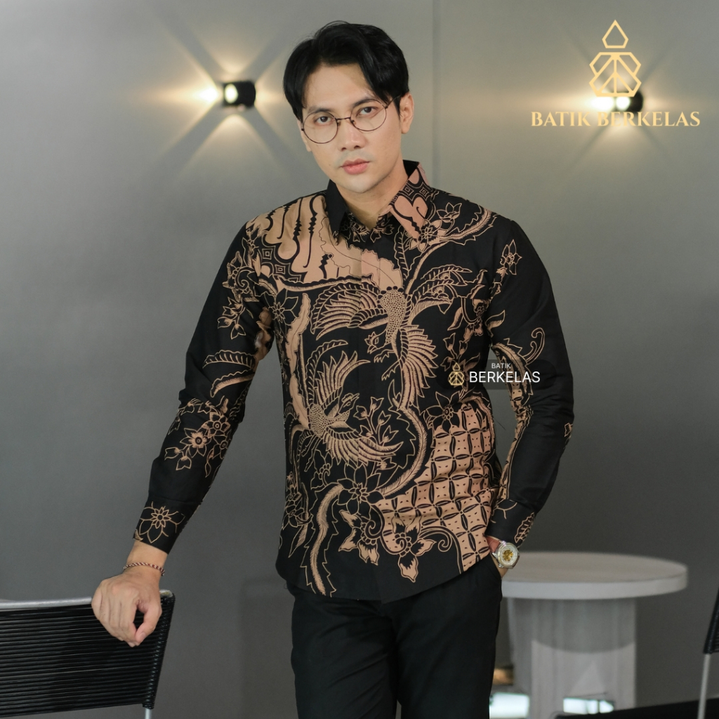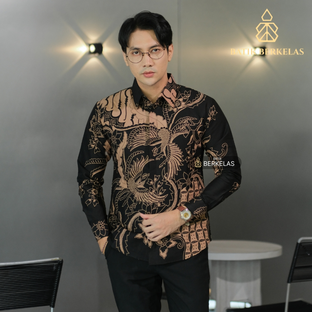 [Mall] BATIK BERKELAS Cakra Hitam Kemeja Batik Pria Slimfit Lapis Furing Katun Elegan Lengan Panjang Untuk Kondangan Lamaran Kantor