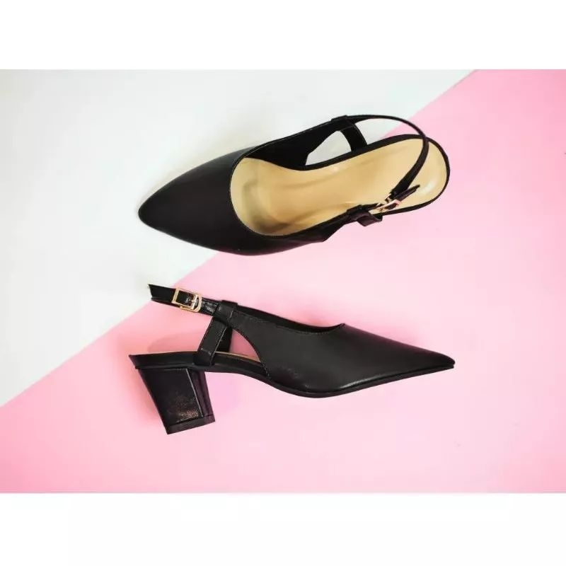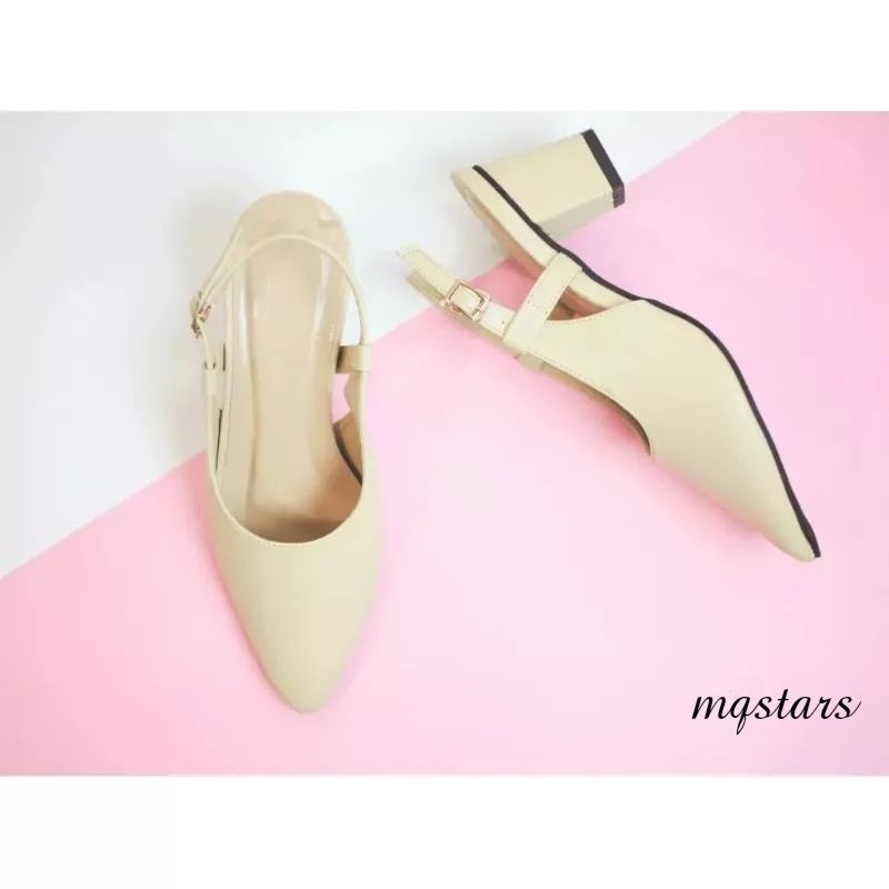 Sandal Chunky Heels Wanita Hak Tahu Tinggi 3cm Slop Mule Elegan Terbaru