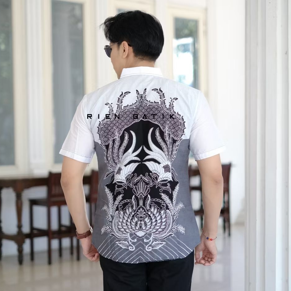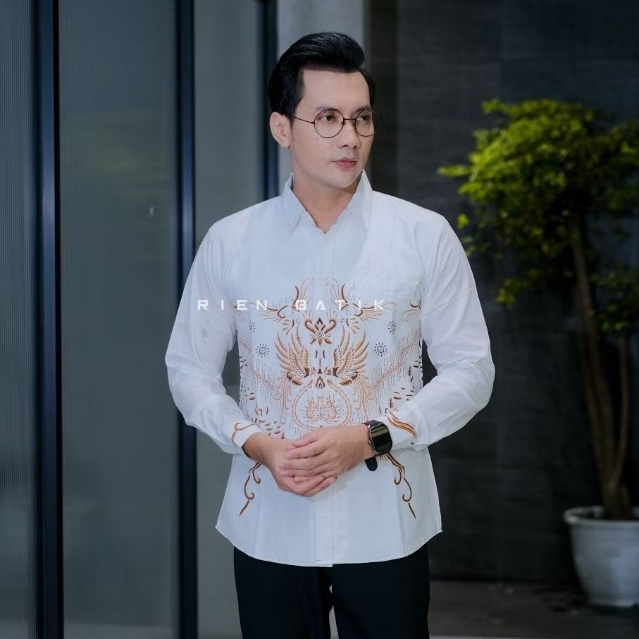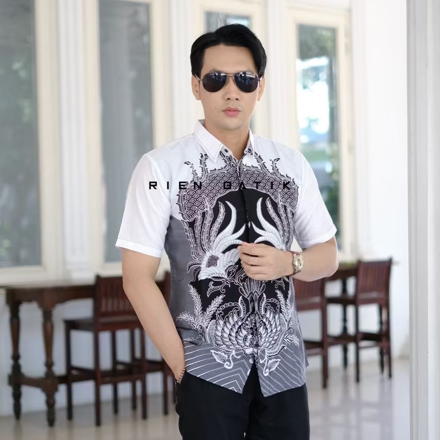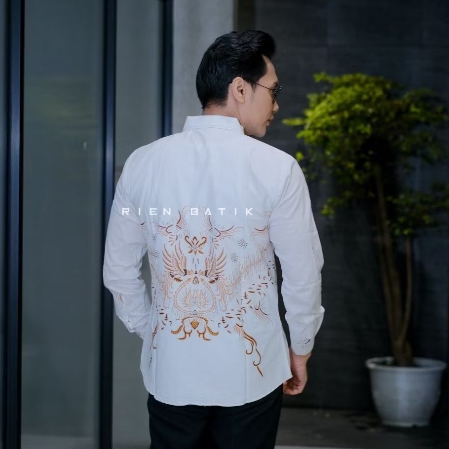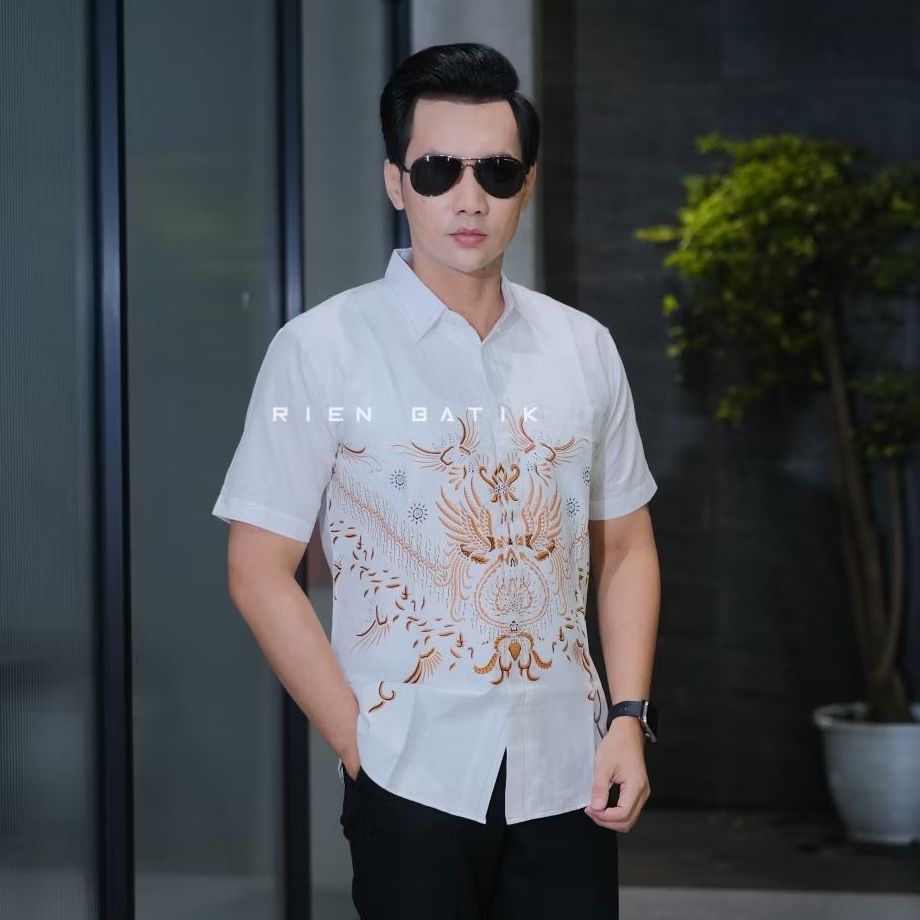 [Mall] Kemeja batik SLIMFIT pria warna PUTIH bahan katun lapis furing premium motif RIEN BATIK Sragenan