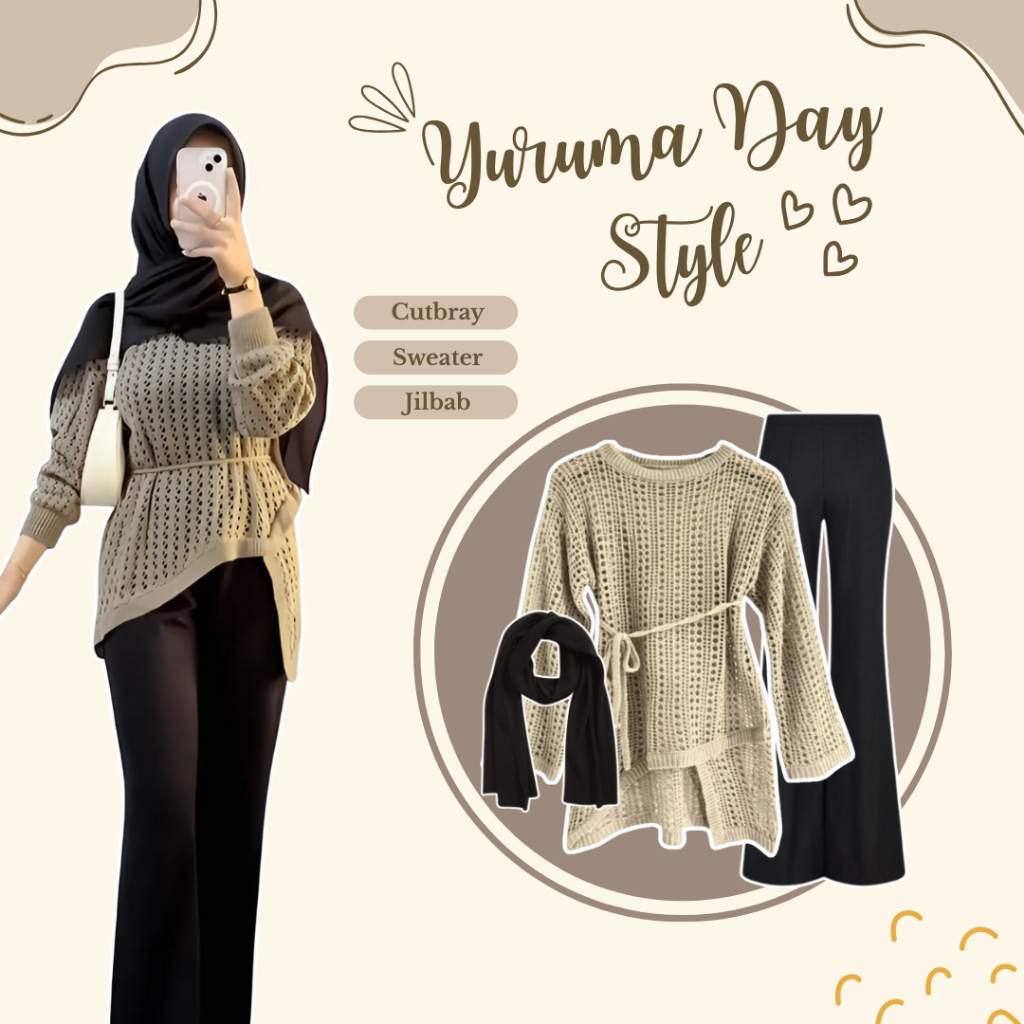 Setelan Wanita Kekinian (er Sweater Rajut + Celana Cutbray + Hijab) One Set Korean Style - LS138