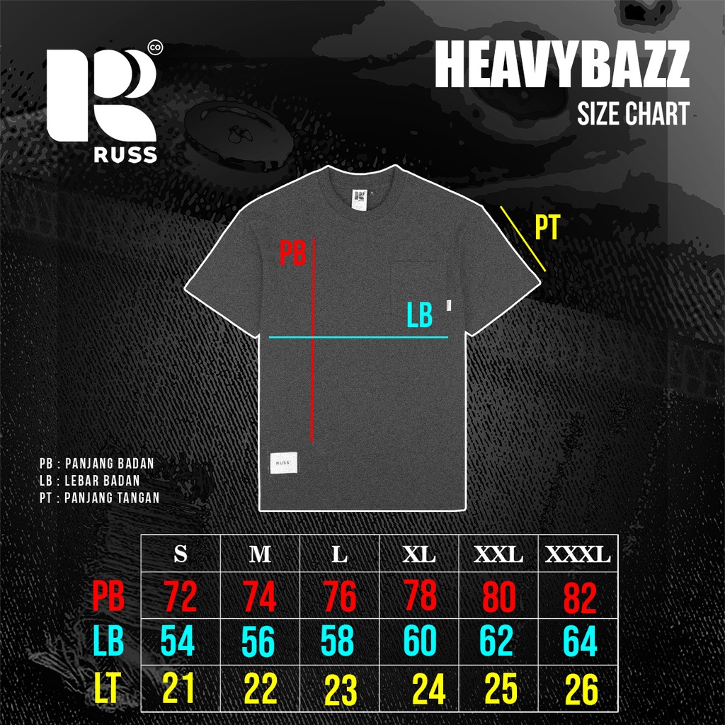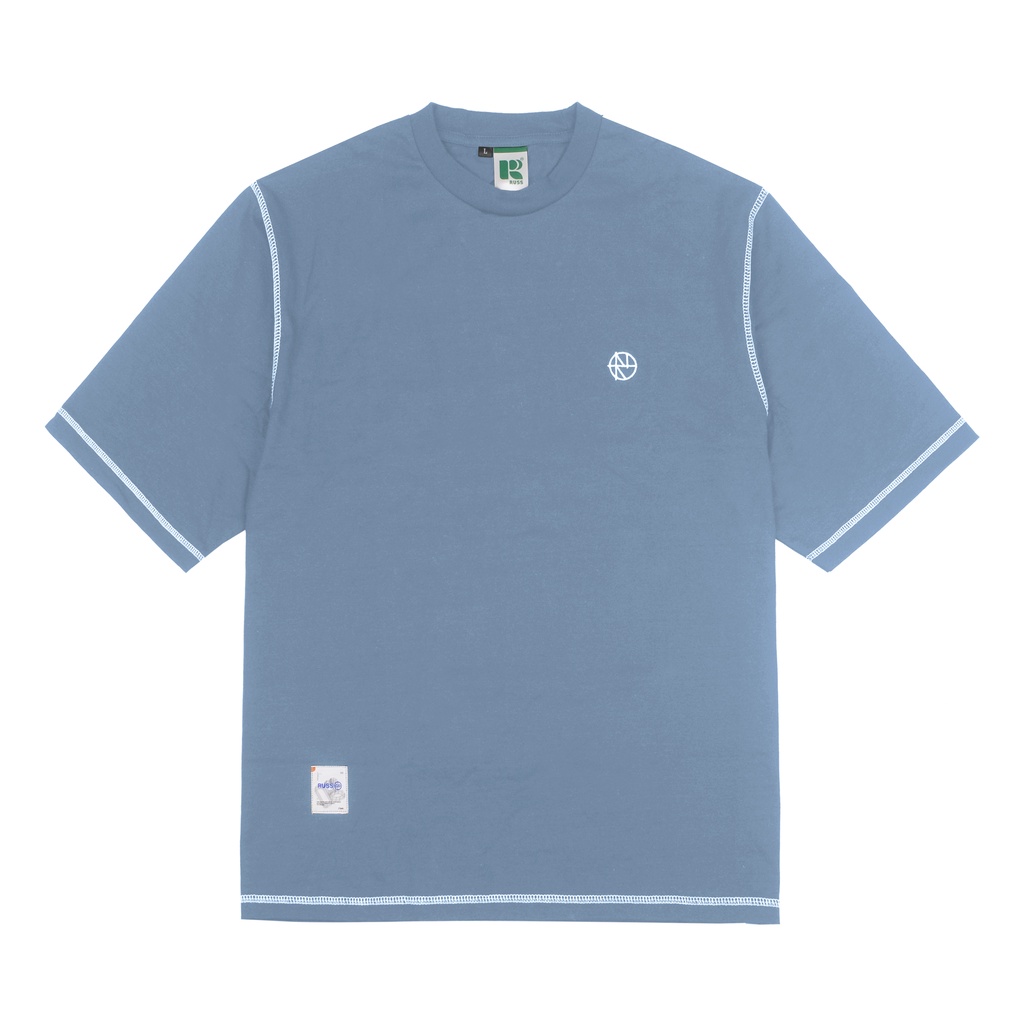 [Mall] Russ Tshirt Kaos Pria Oversized Heavycotton Hemming Light Blue ( Up To Big Size )