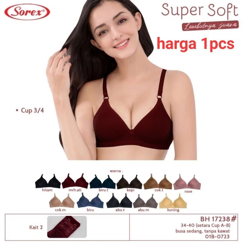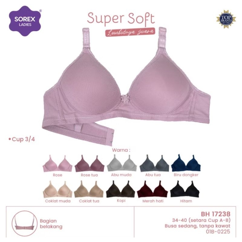BRA/BH WANITA SOREX ART 17238. CUP.B SUPER SOFT BEST.TANPA KAWAT BUSA TIPIS. UK:34,36,38,40