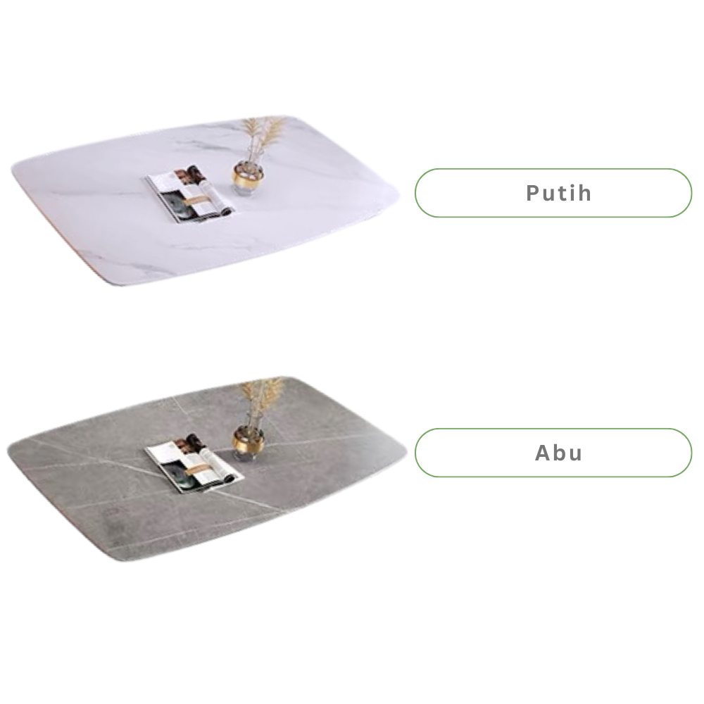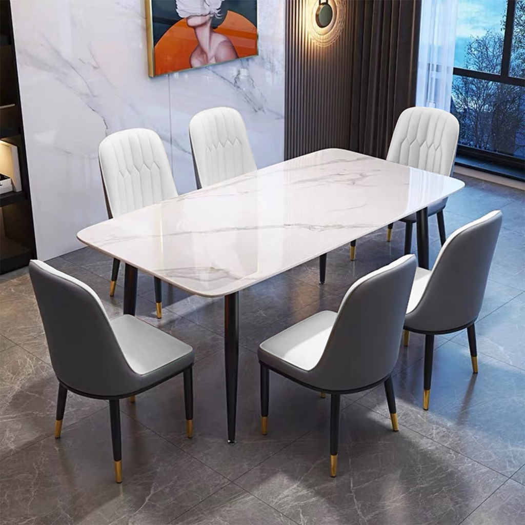 Set Meja Makan Batu Sinter Putih Kursi Putih Minimalis