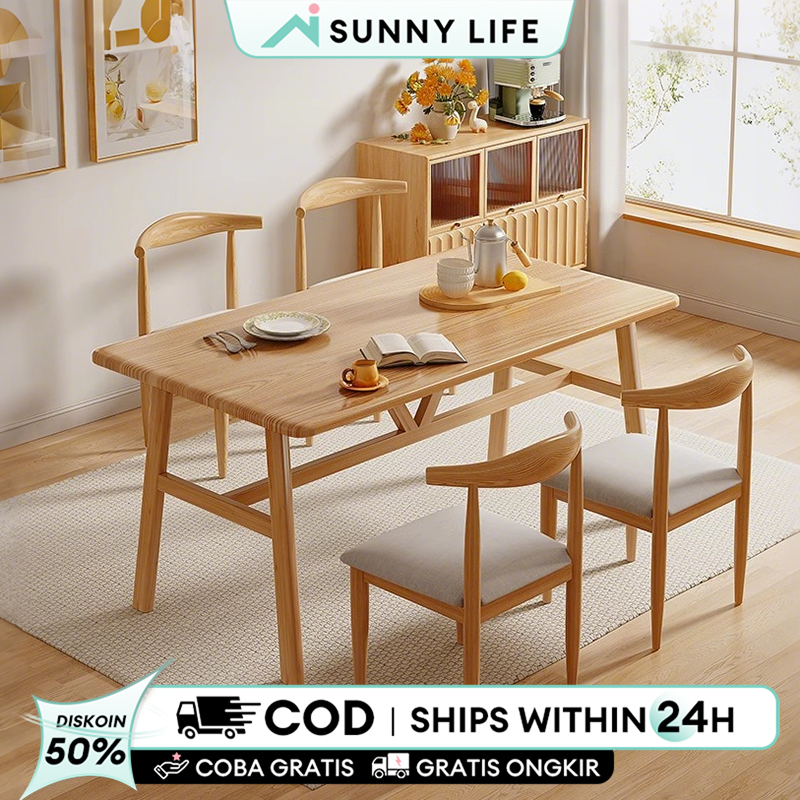 Meja Makan Set 4 Kursi Meja Makan Kayu Solid Makan Minimalis Meja Makan Murah