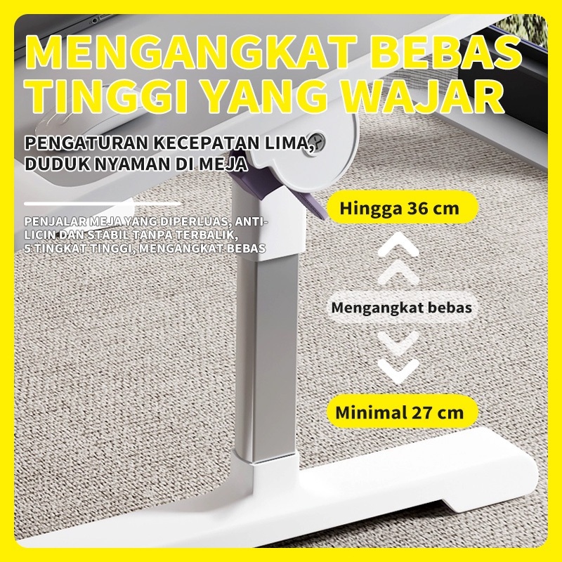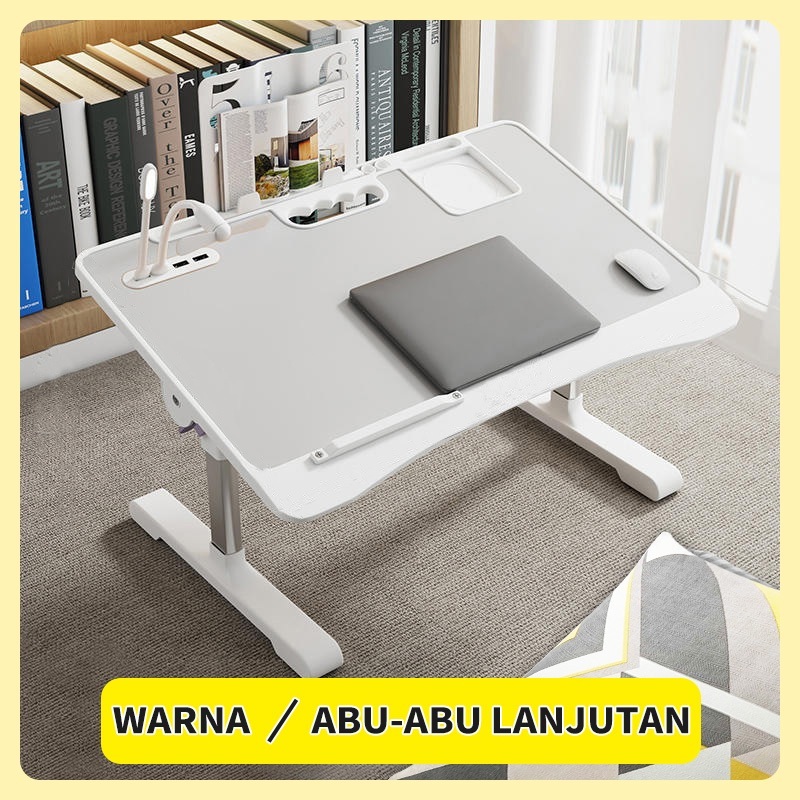 Meja Laptop Lipat Foldable Desk Meja Belajar Serbaguna Portable Dengan USB Port Bonus Kipas Lampu Meja Belajar Anak Lap