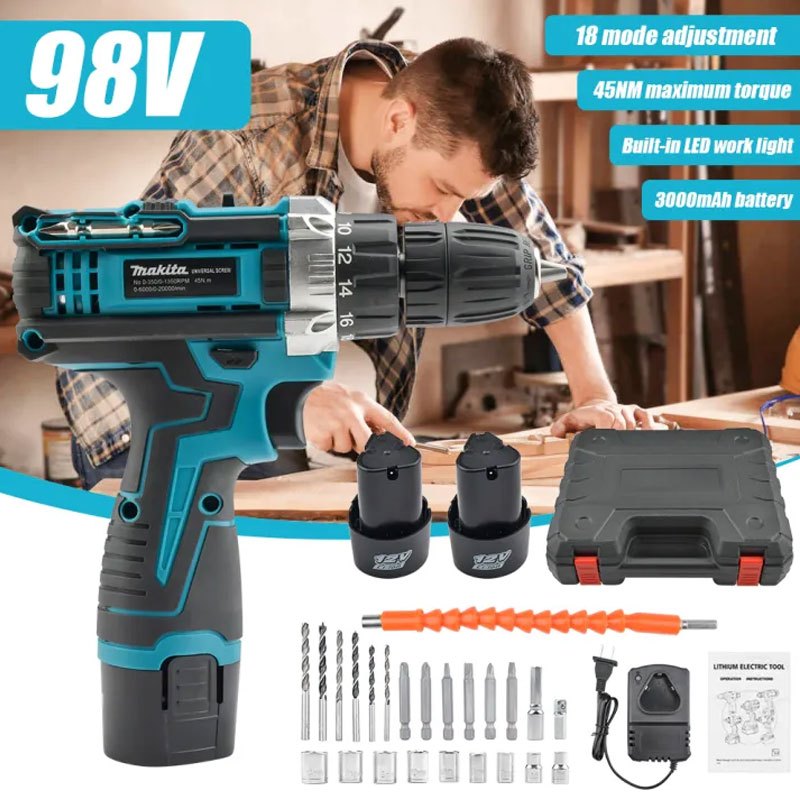 Makita 12V Bor Alat Listrik Tugas Berat Set Mata Bor Asli Jepang Set Mata Bor Tanpa Kabel untuk Kayu Logam dan Alat List