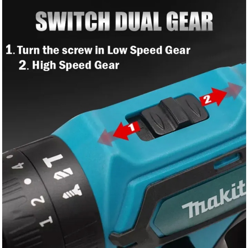 Makita Cordless Drill 36V Drill Power Tools 2 Electric 1 Rechargeable Drill Bit Set for Metal Wood and Concrete Home