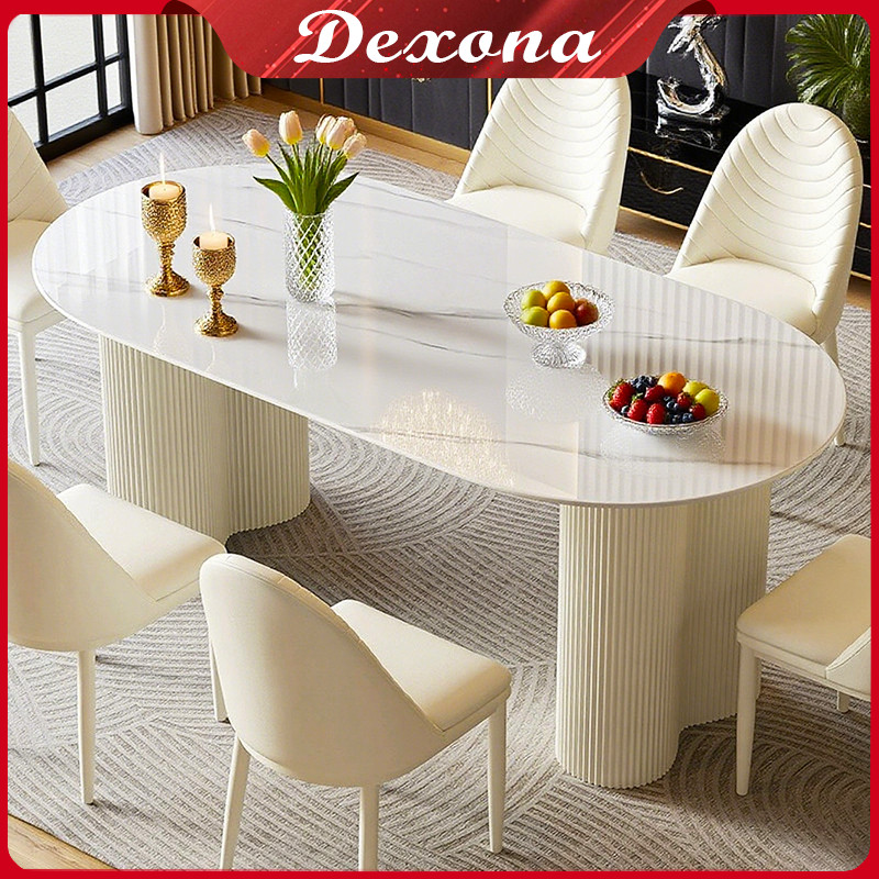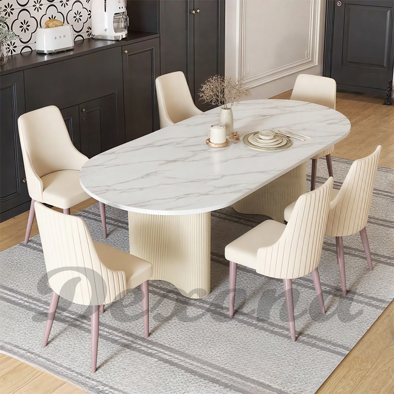 Meja Makan Marmer Mewah Marmer alam Meja batu sinter Gaya krim modern Meja estetika sederhana Meja makan minimalis cxq