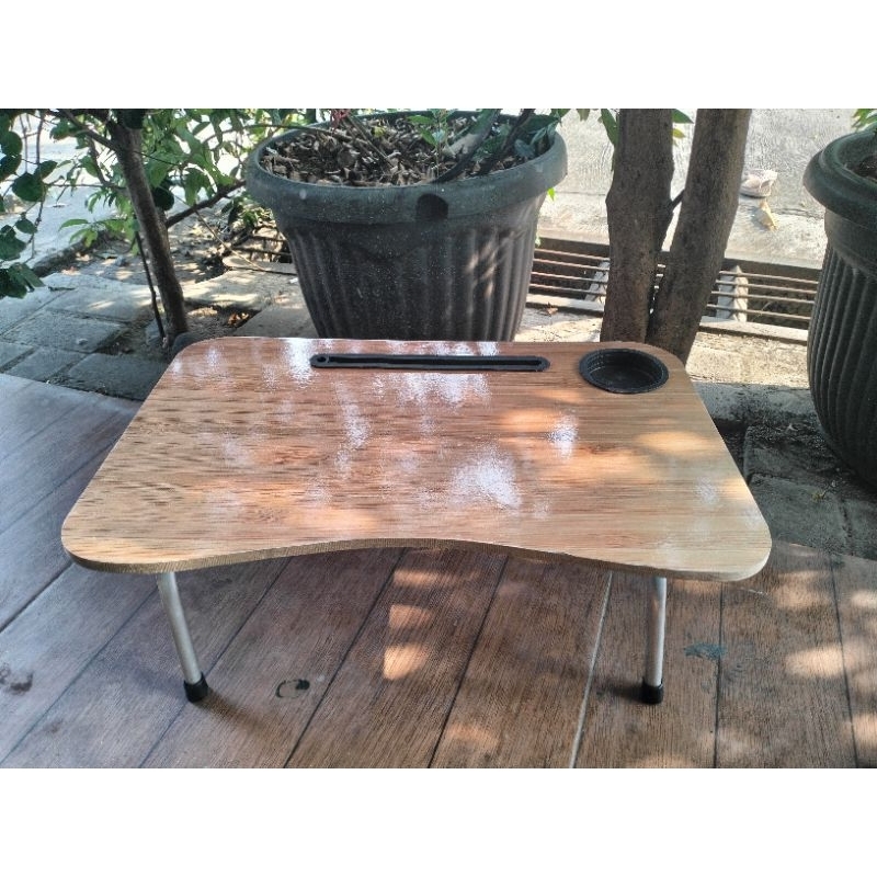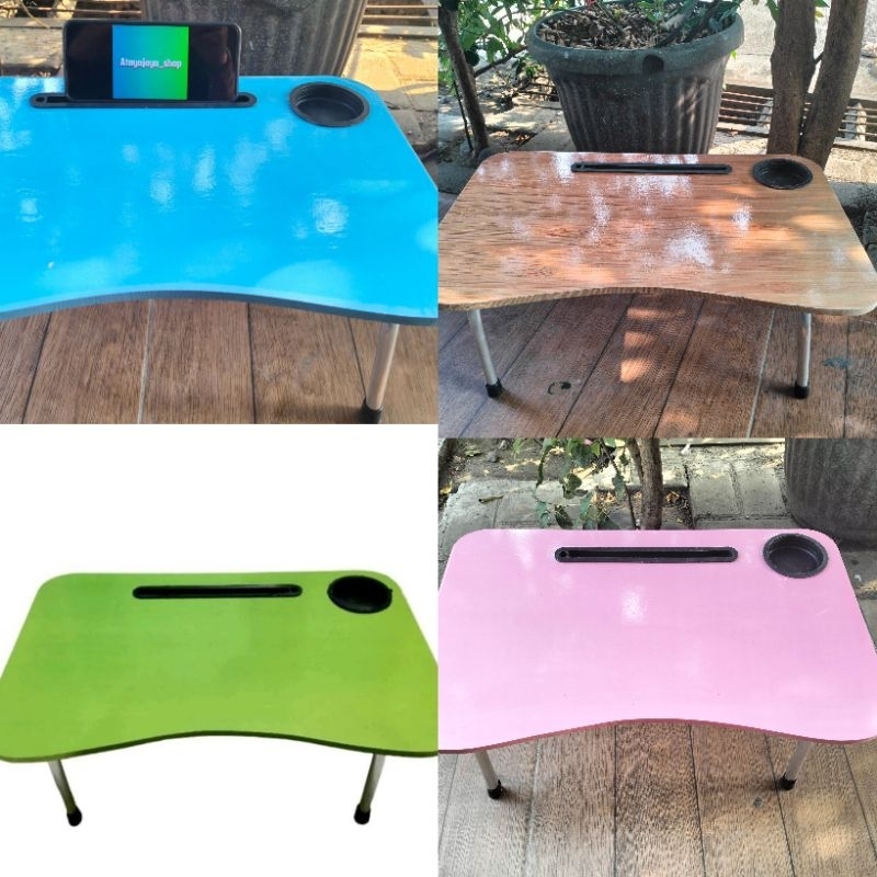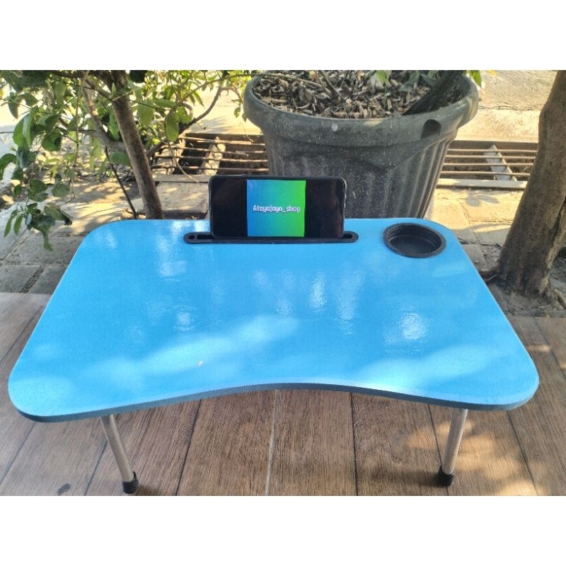 MEJA BELAJAR LIPAT LAPTOP POLOS + TEMPAT GELAS DAN HP/MURAH