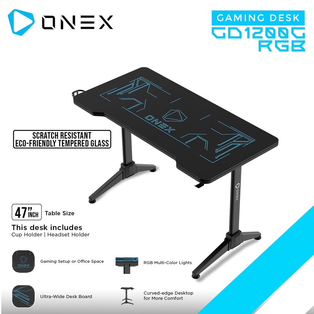 ONEX GD1200G-RGB Meja Gaming Desk Tempered Glass RGB