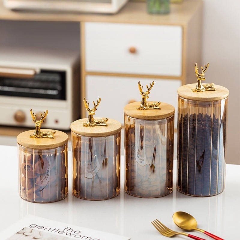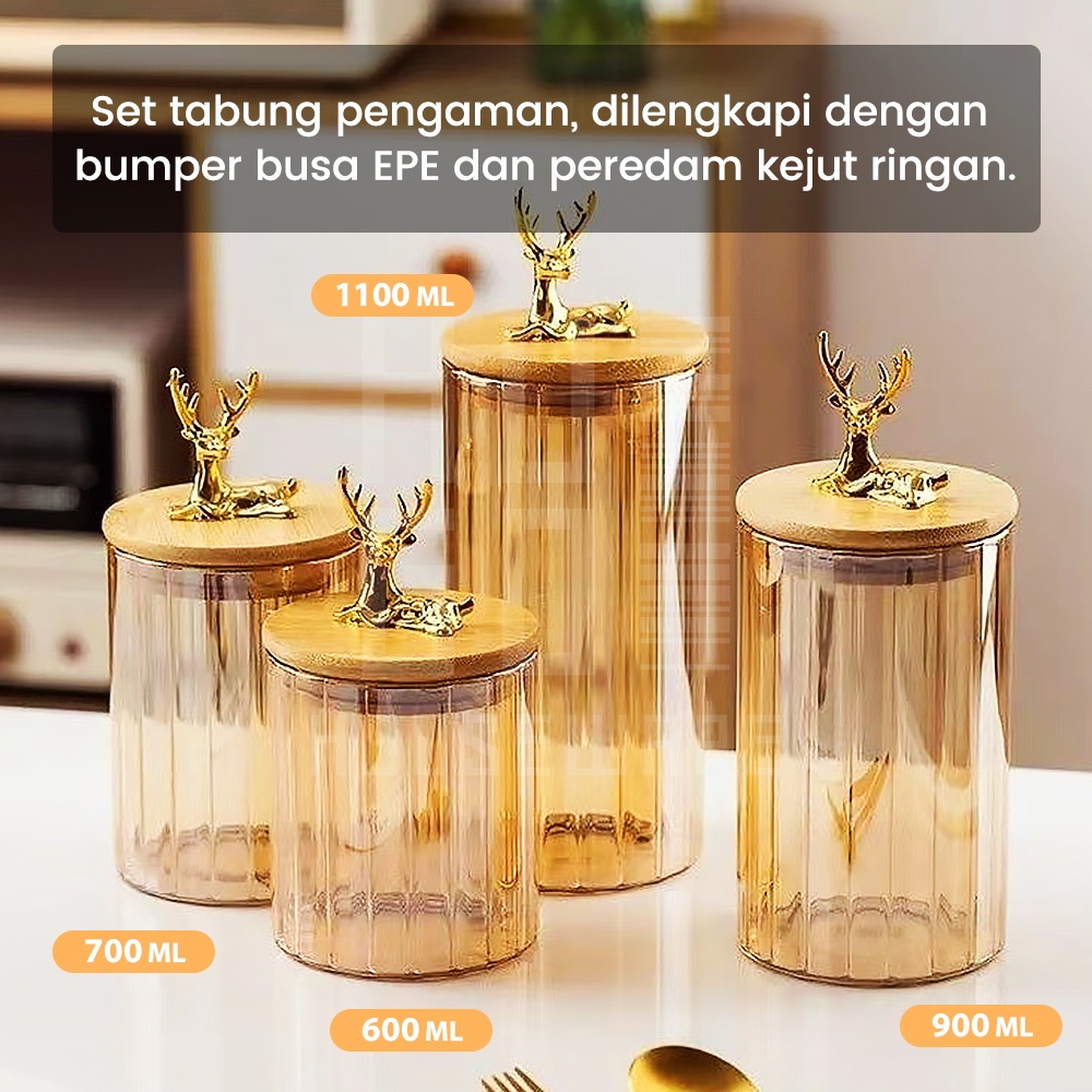 SAKULA Toples Rusa Tempat Penyimpanan Snack Mewah /Toples Makanan Serbaguna / Toples Kaca / Jar Toples Kaca Kotak/Toples