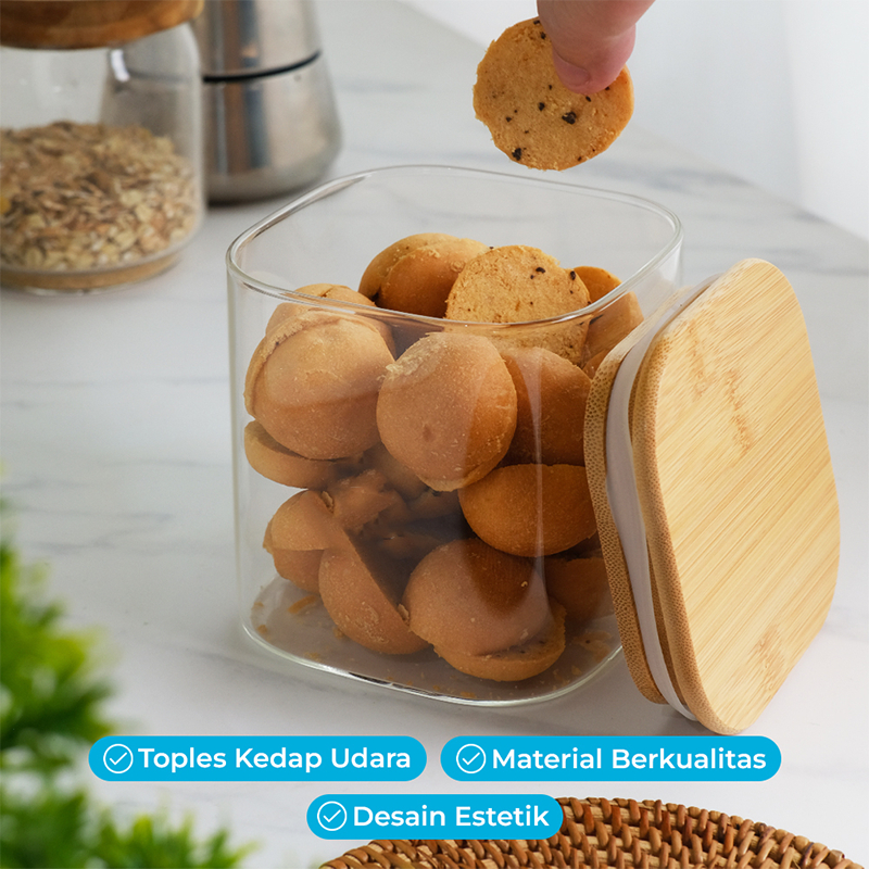 Toples Kaca Aesthetic Tutup Kayu Kedap Udara Tempat Penyimpanan Kue Kering Bumbu Dapur Jar