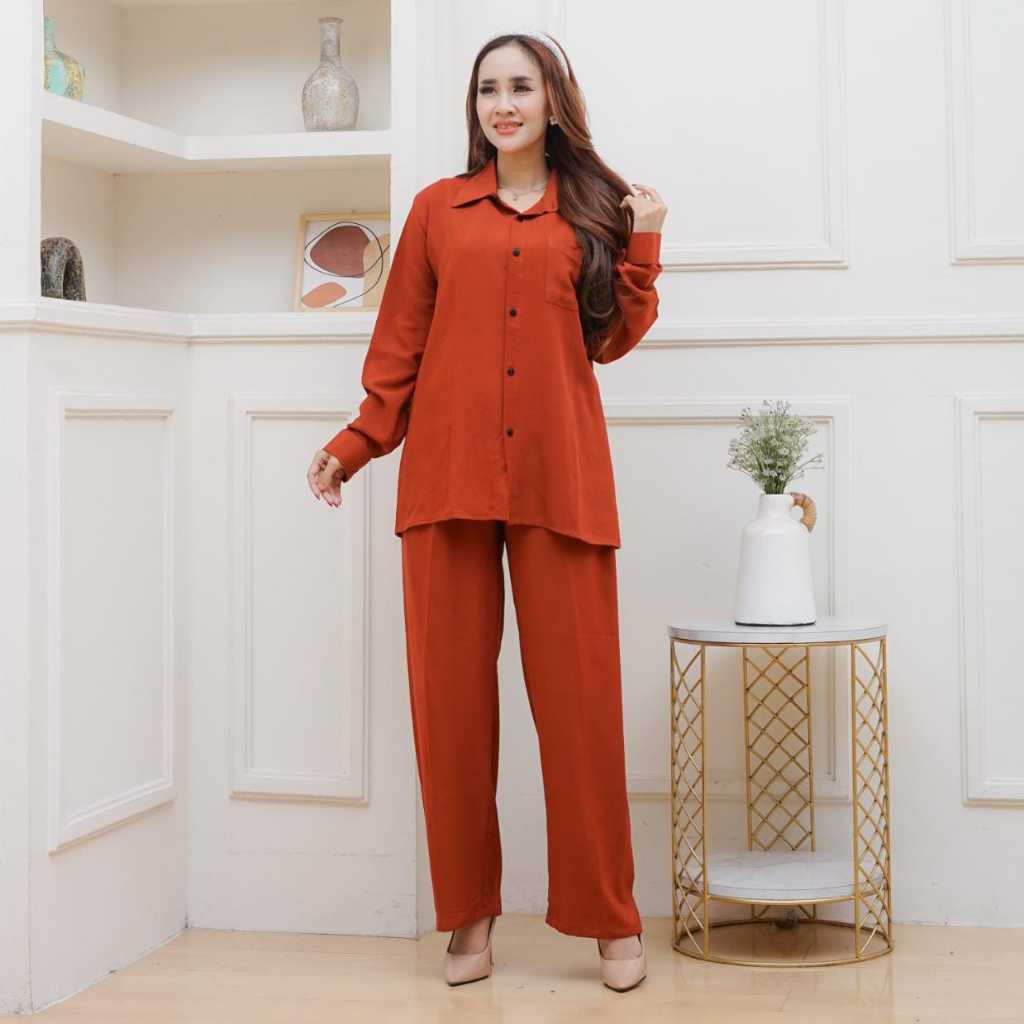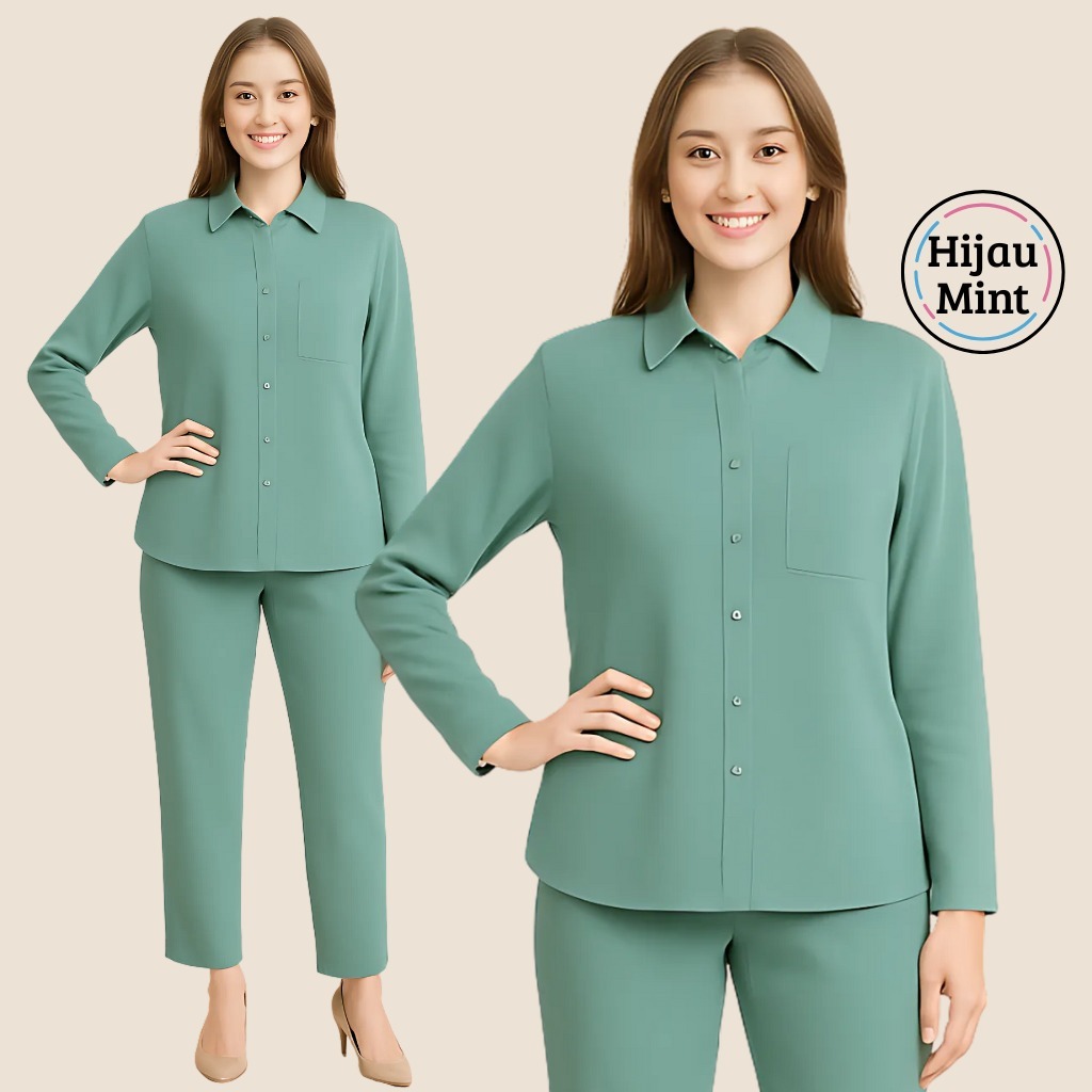 Setelan Wanita Rayon Polos Lengan Panjang One Set Remaja Kekinian