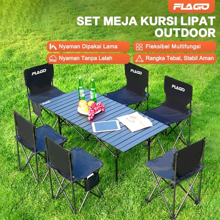 KURSI LIPAT OUTDOOR FLAGO SET MEJA PORTABLE SANTAI CAMPING MANCING KEMAH TERAS CAFE KANTOR MURAH SATU PAKET 6 5 4 3 2 1