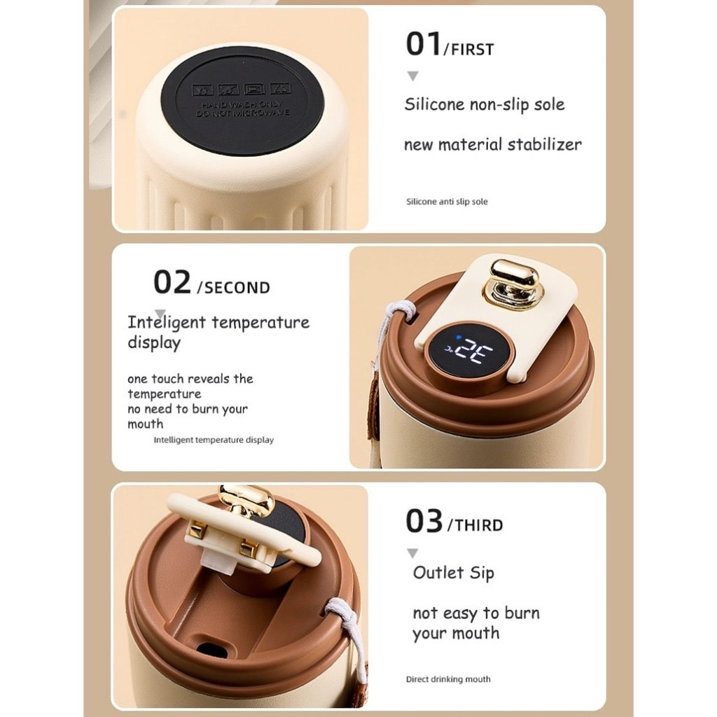 Tumbler Stainless Botol Minum 450 ml Suhu Digital LED Gelas Termos Air Kopi Panas