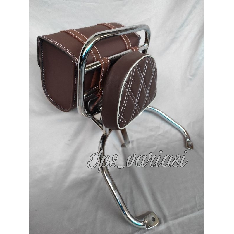 Back rack benelli shiny / sandaran belakang keeway shiny bantalan plus tas beneli model retro klasik