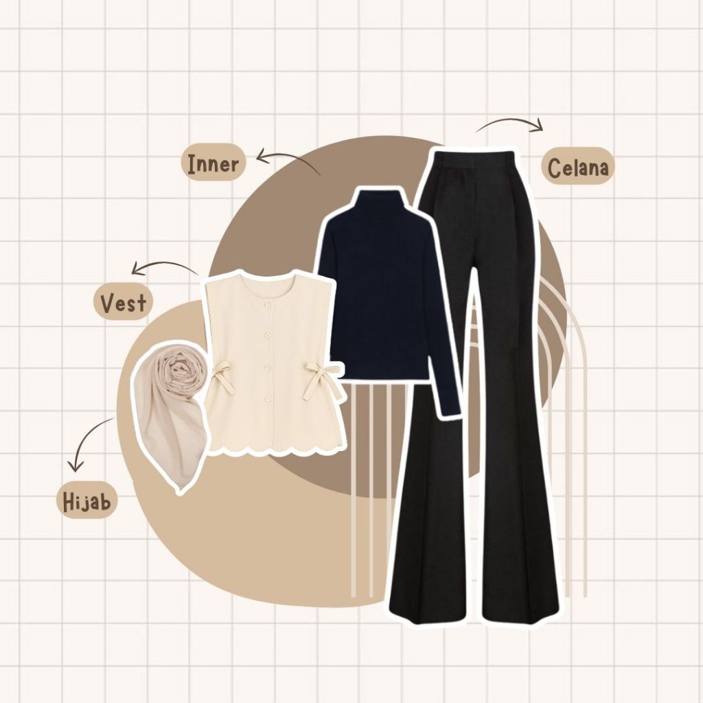 Oneset Wanita Kekinian 4IN1 Irine Vest Inner Manset Kaos Celana Cutbray Hijab Bella Square KF07R