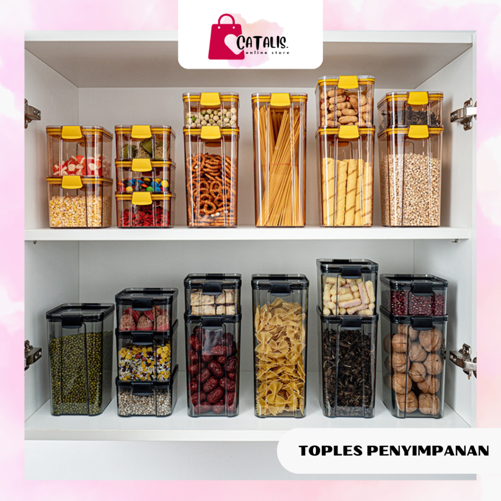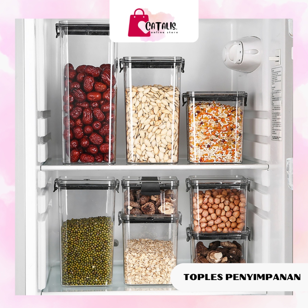 CATALIS Toples Plastik Bening Toples Aesthetic Toples Bumbu Dapur Kotak Snack Kedap Udara Toples Makanan Transparan Set