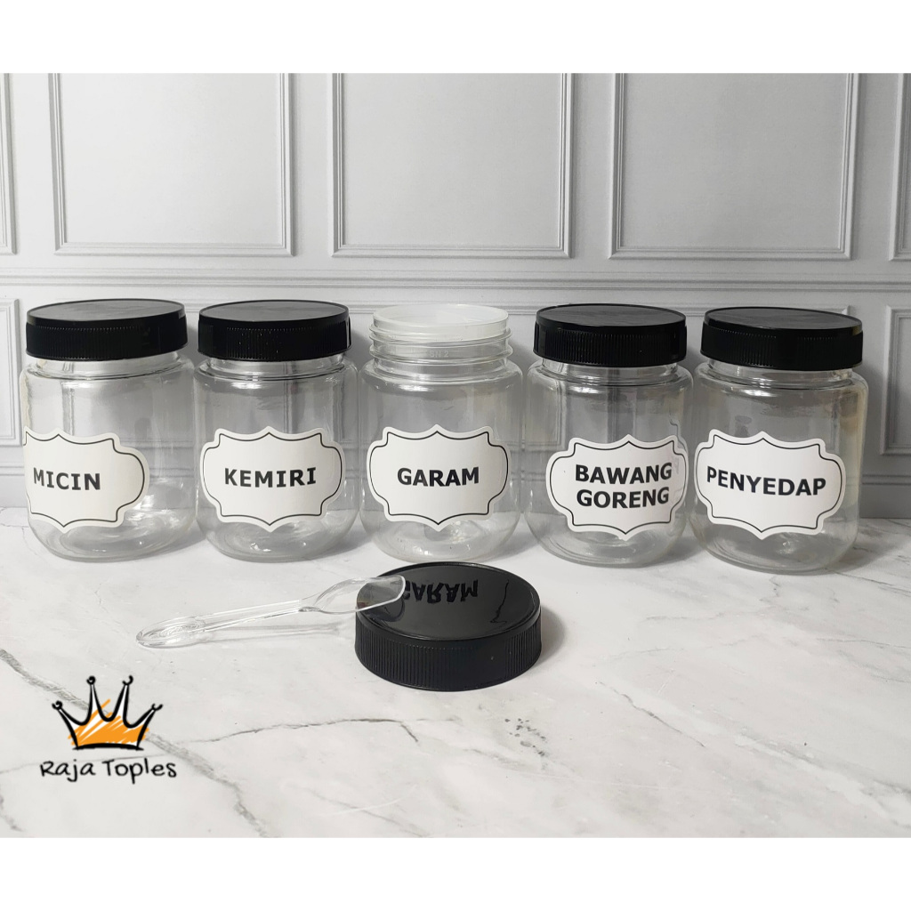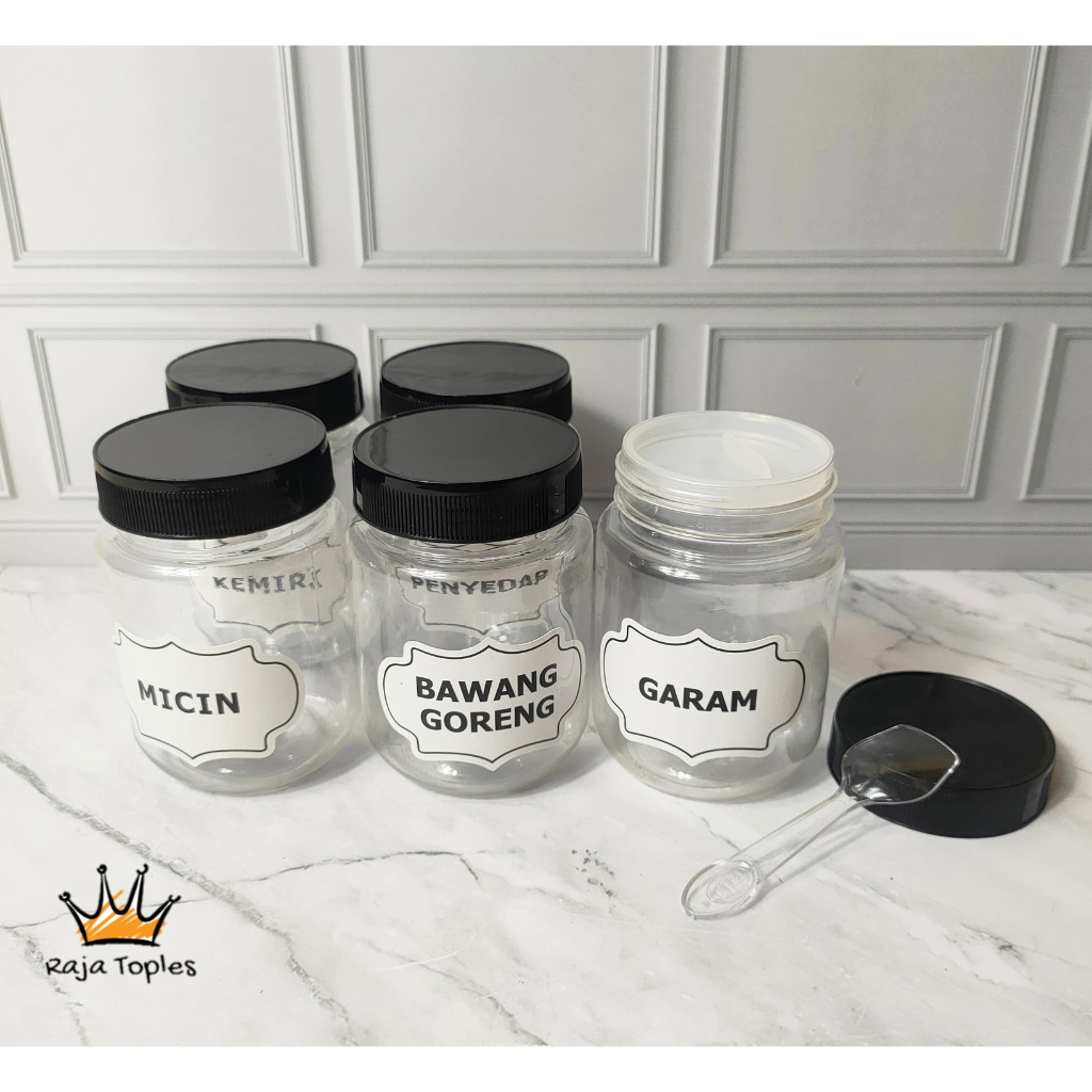 TOPLES BULAT TUTUP BLACK 200 ML AESTHETIC TEMPAT BUMBU DAPUR FREE SENDOK DAN BUBBLE