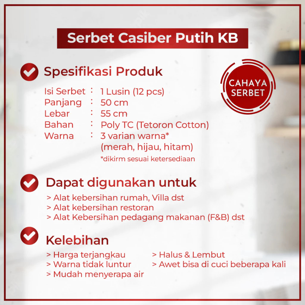Lap Serbet Casiber Putih Kb / Kain Lap Dapur Tangan / Kailn Lap Serbet Jumbo Pcs