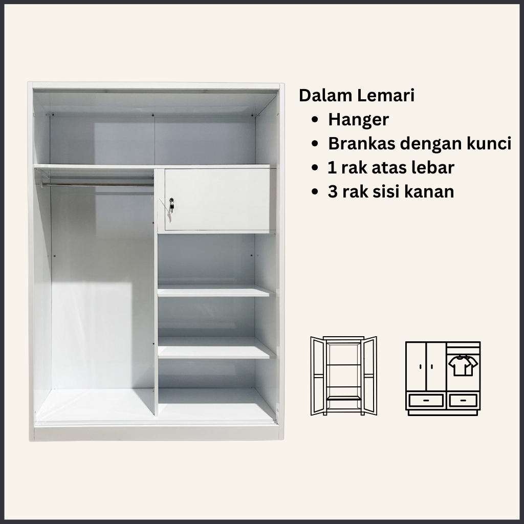 BEATS. Lemari Pakaian 2 Pintu Besi Sliding Cermin | Lemari Baju Sleding Besi