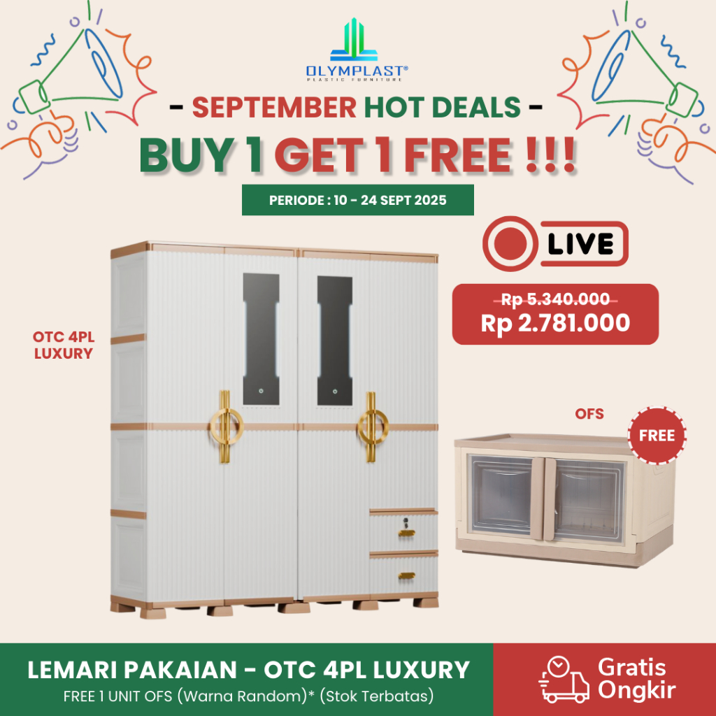 Olymplast OTC 4PL ST2 LUXURY / Lemari Pakaian Plastik / Lemari Pakaian Mewah / Lemari Pakaian 4 Pintu