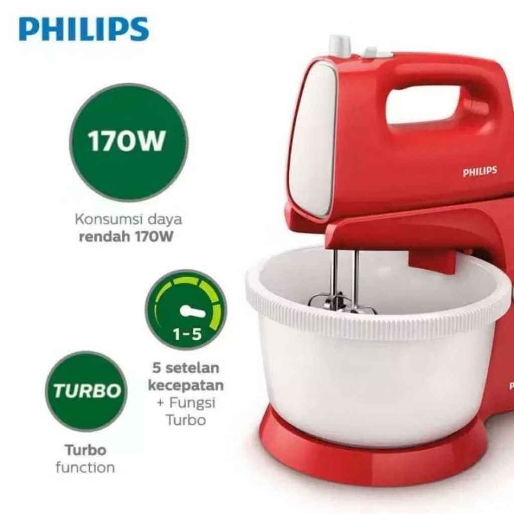 MIXER PHILIPS 2 LITER HR-1559 STAND MIXER MIKSER PHILIPS MIXER PENCAMPUR MIXER KUE MERAH