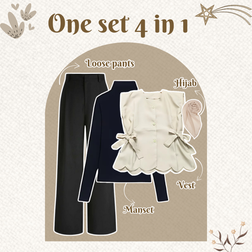 OOTD - One Set 4 in 1 - Korean Fashion - fit - Vest + Manset + Loose pants + Bella Square UD78