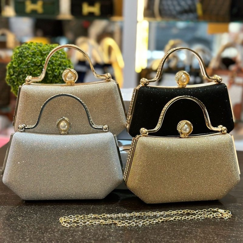 Tas Pesta Luna Embellished Crystal Box Clutch