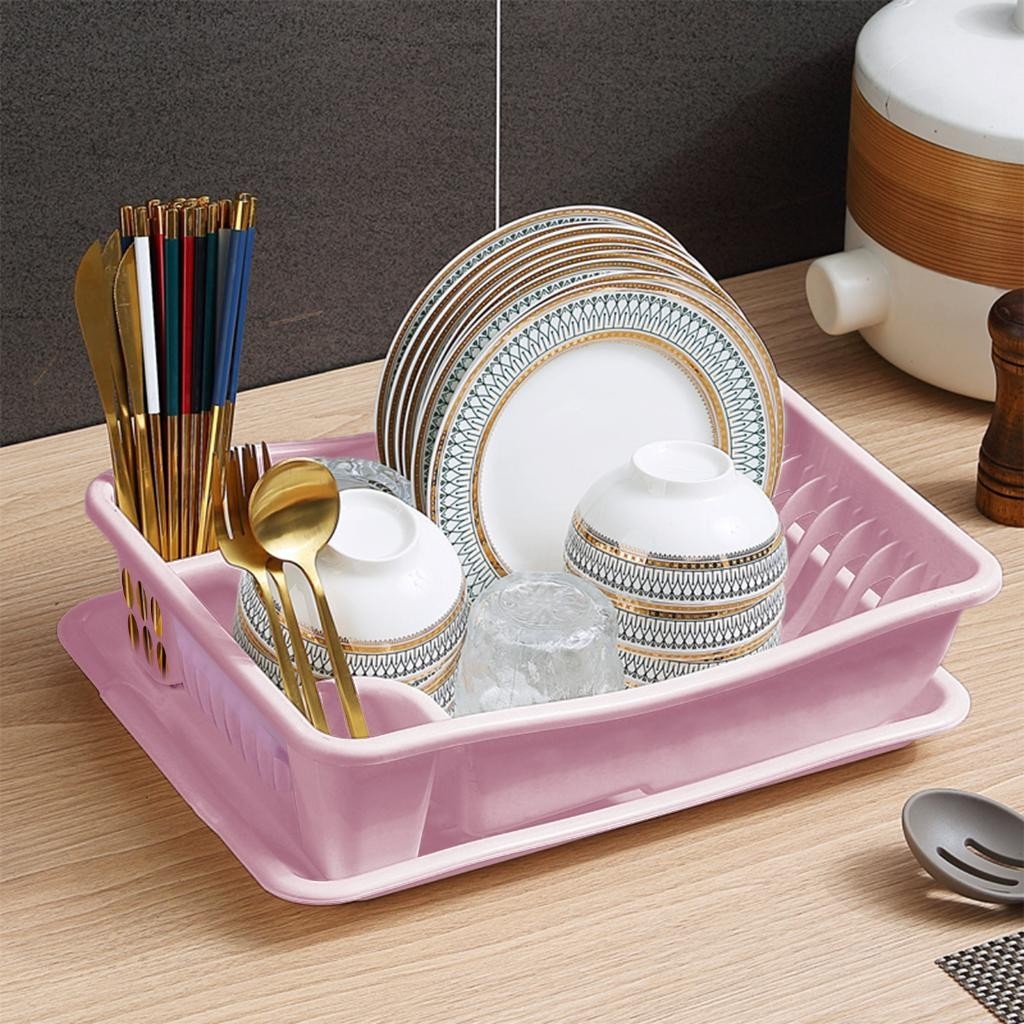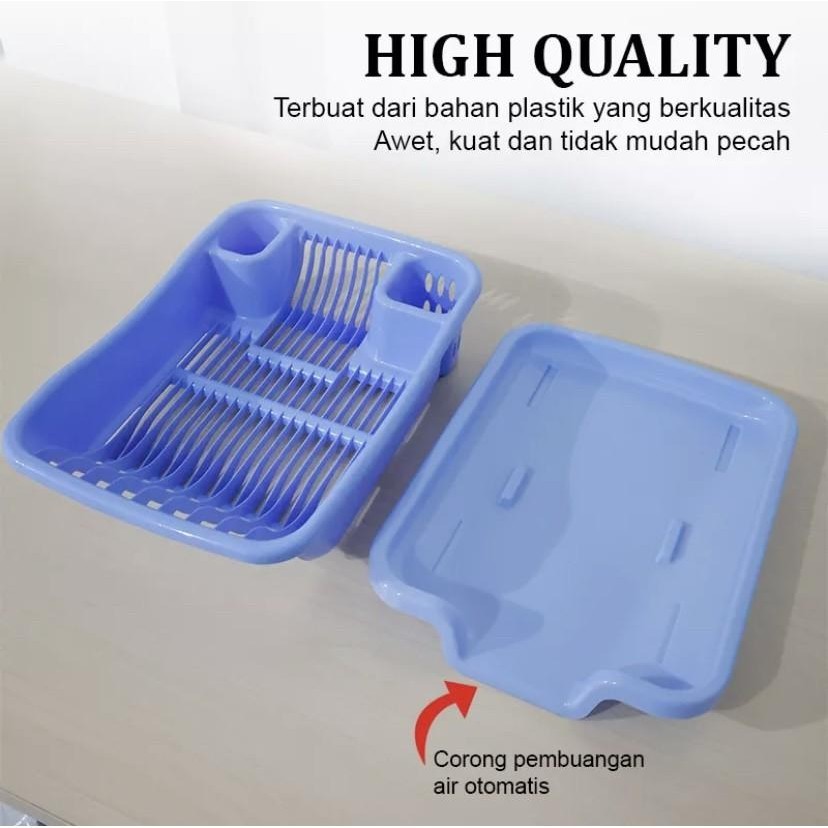 Rak piring minimalis/ Rak pengering piring/ Rak piring dengan nampan/ tempan meniris piring Cream Hijau Plastik