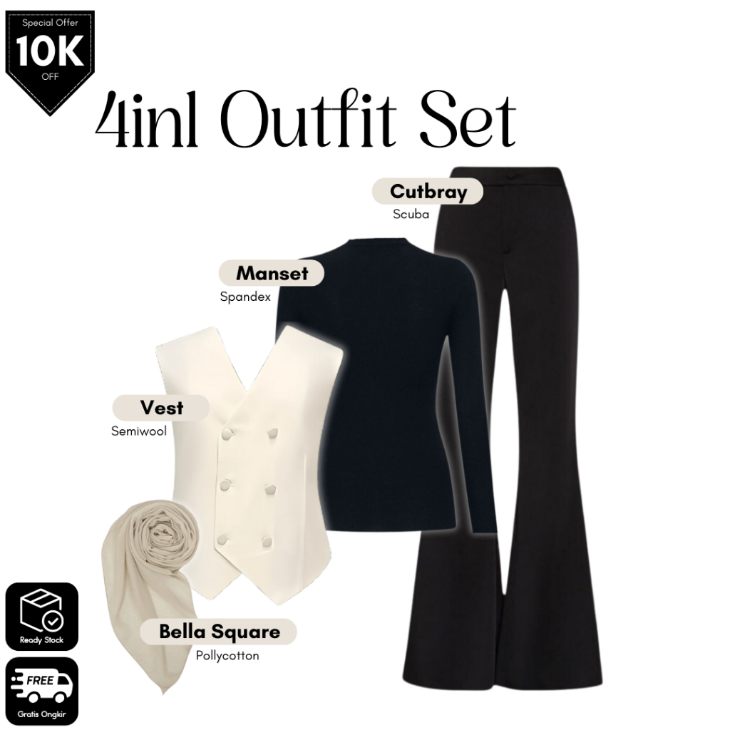 GRL 129 | One Set Remaja Wanita 4in1 | Vest + Manset + Cutbray + Bella Square | fit Kekinian Look