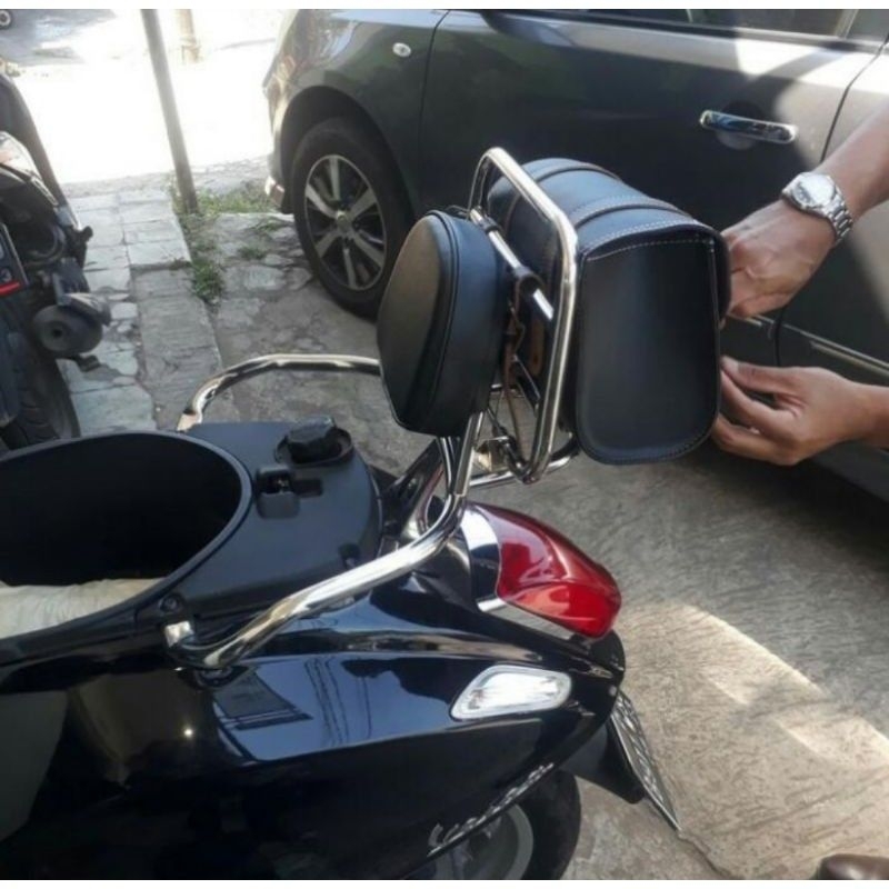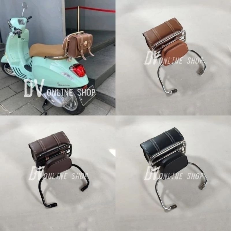 Back rack Universal vespa matic Lx /vespa primavera/vespa sprint/ dan Gts plus tas kulit dan busa bantalan
