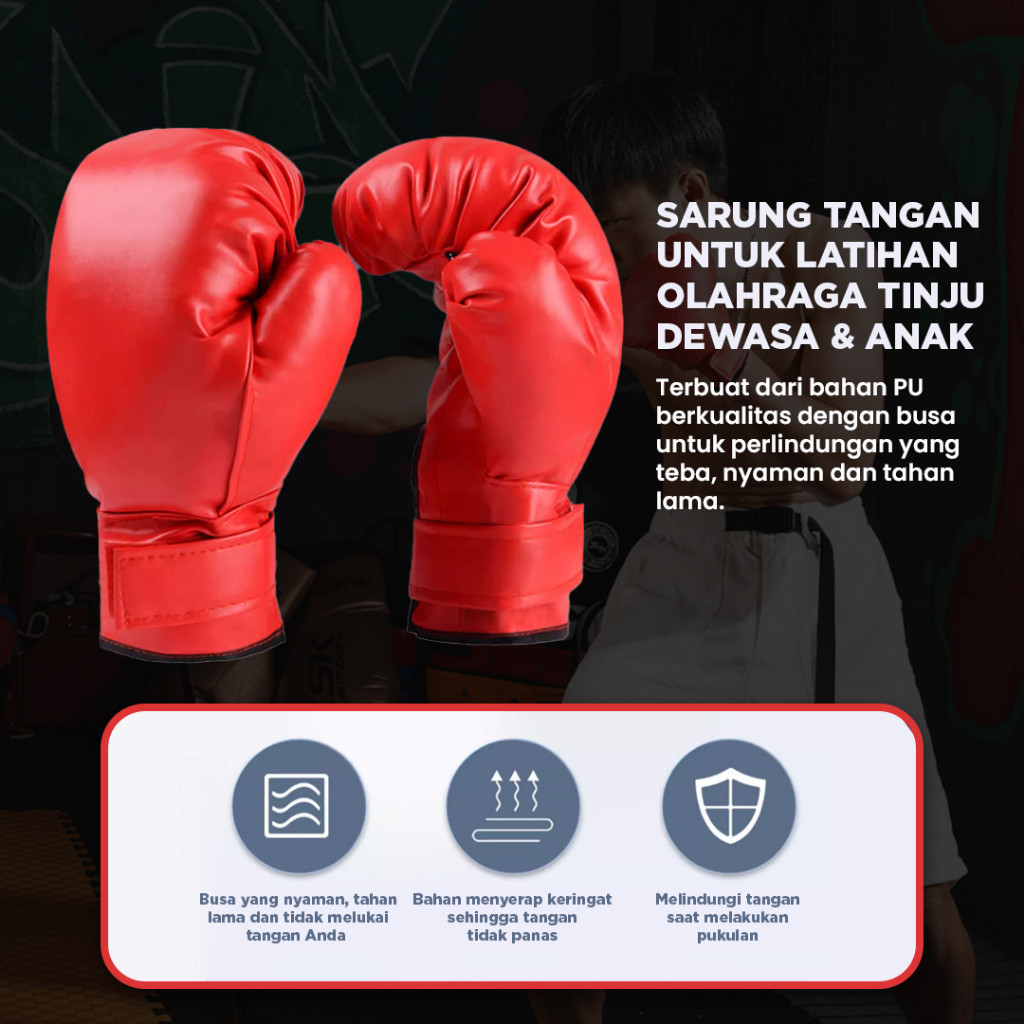 Xin Yue Sarung Tinju Samsak Anak Polos Material PU Boxing Gloves Set Kiri Kanan - Sarung Tinju Boxing Olahraga MMA Dewas