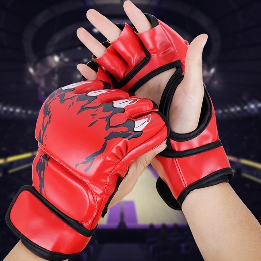 Sarung Tangan Tinju Muay Thai Boxing Mma Ufc Ukuran Anak Bahan Kulit Half Finger Setengah Jari / Boxing Gloves Set