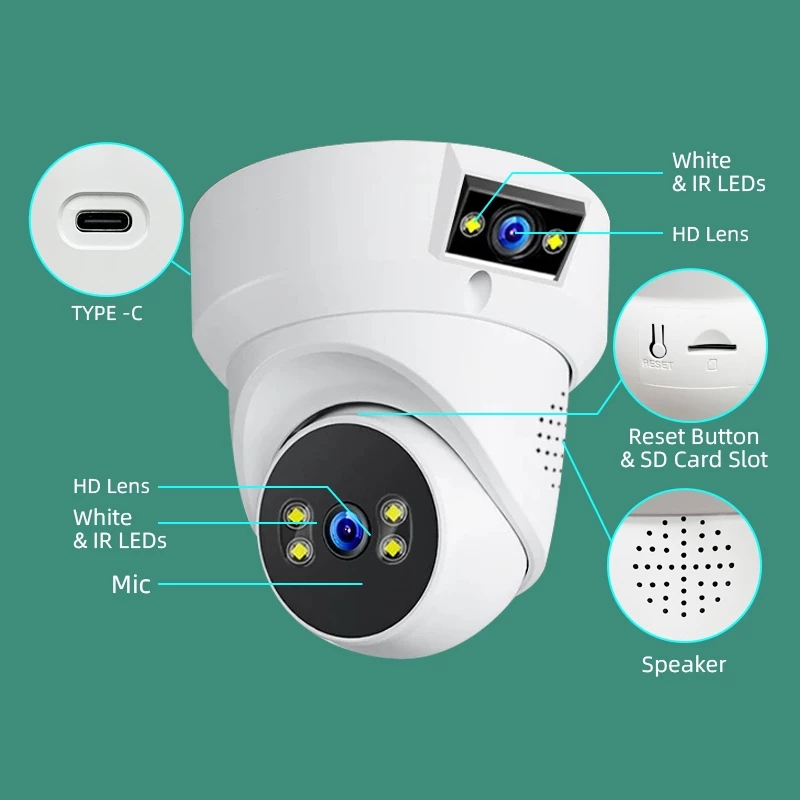 V380-Dual-Q1 Kamera Pengawasan Keamanan Cerdas Nirkabel Kamera CCTV HD 1080P