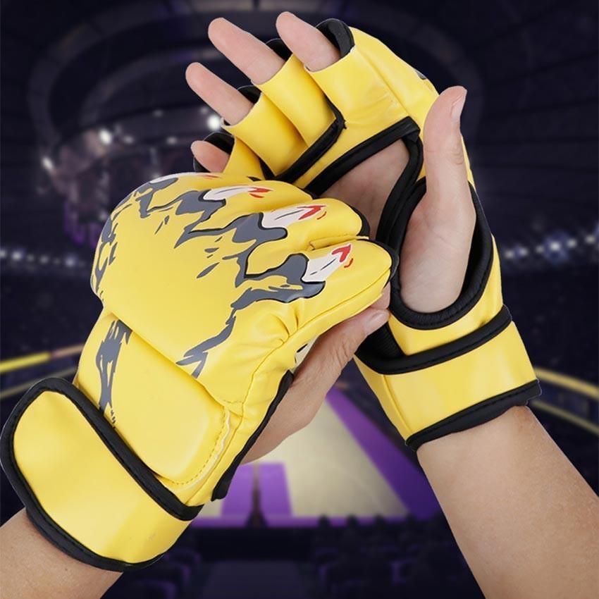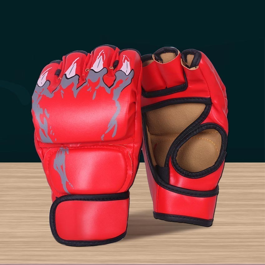 2Pcs Sarung Tangan Tinju Anak MMA Muay Thai Motif api Boxing Gloves Tinju Set