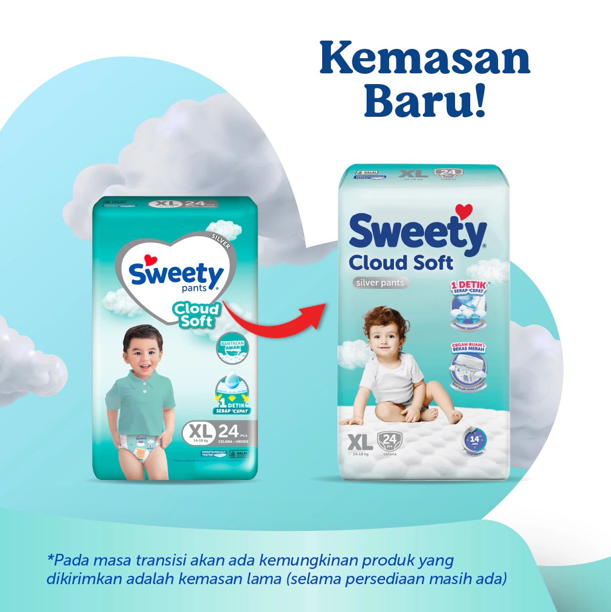 SWEETY SILVER PANTS CLOUD SOFT XL24 POPOK CELANA BABY DIAPERS