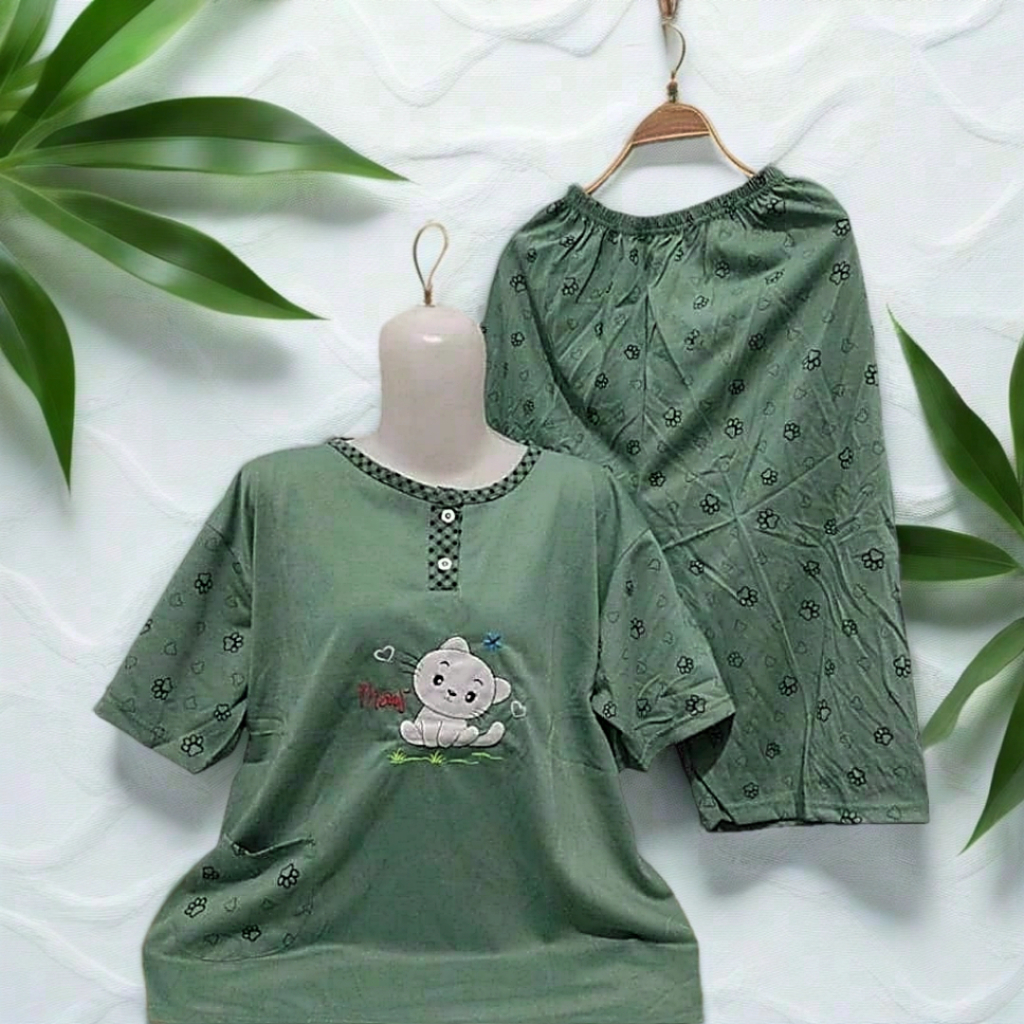 Setelan Baju Tidur Kaos Celana 3 / 4 Jumbo 3XL Big Size Babydoll Wanita LD 110 120Cm bayar di tempat