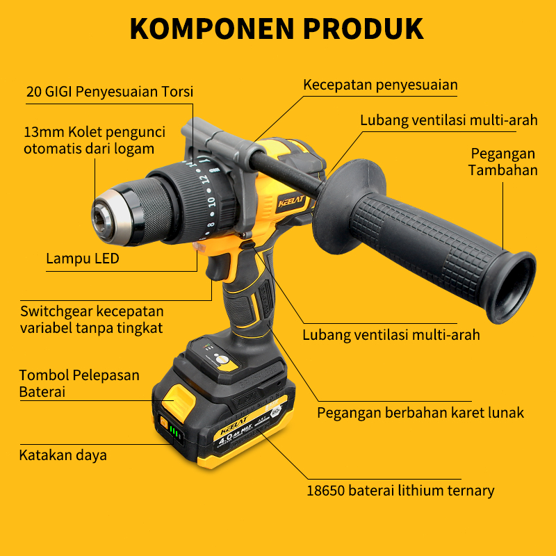 【KEELAT—KCDBor】Mesin Bor Listrik 1 Set Lengkap Mesin Bor Baterai Ori Impact Bosch Cas Include Modern Alat Bor Makita