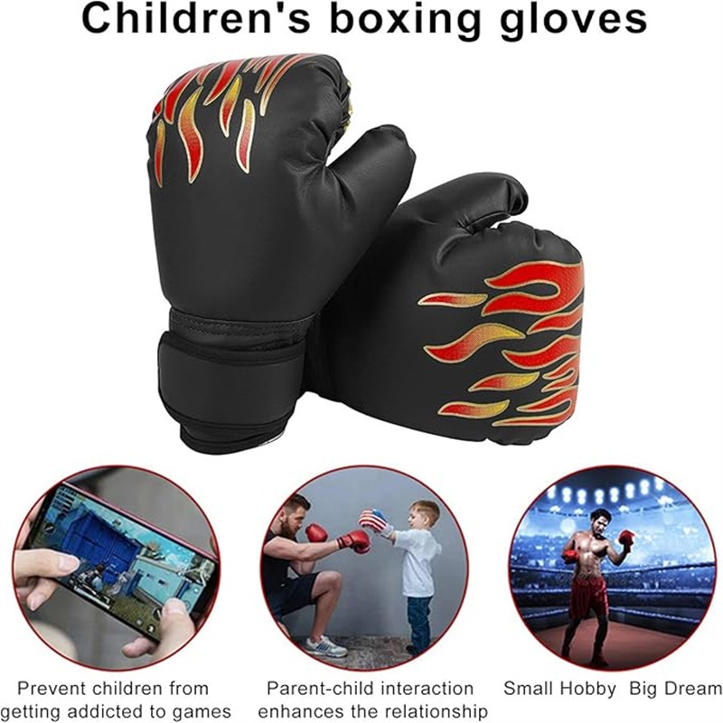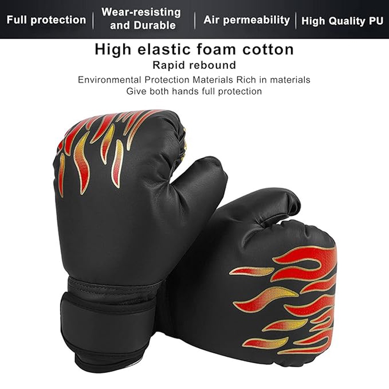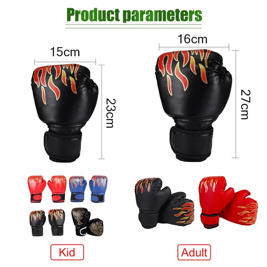 2Pcs Sarung Tangan Tinju Anak Dewasa Muay Thai Motif api Boxing Gloves Tinju Set