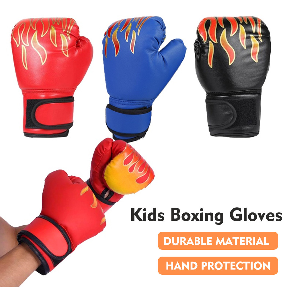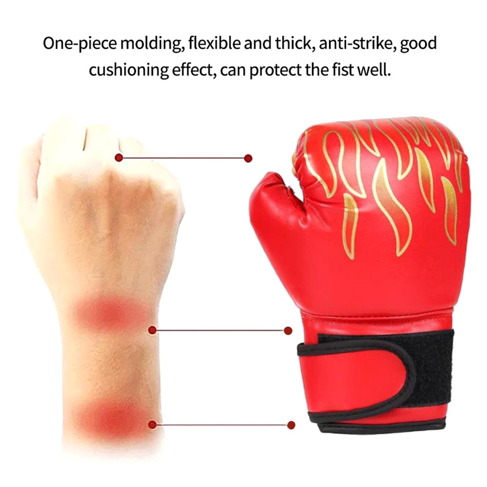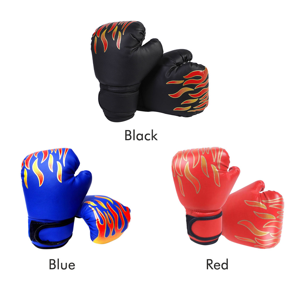Sarung Tangan Tinju Anak MMA Muay Thai Motif api Boxing Gloves Tinju Set PU Sarung tangan pelatihan