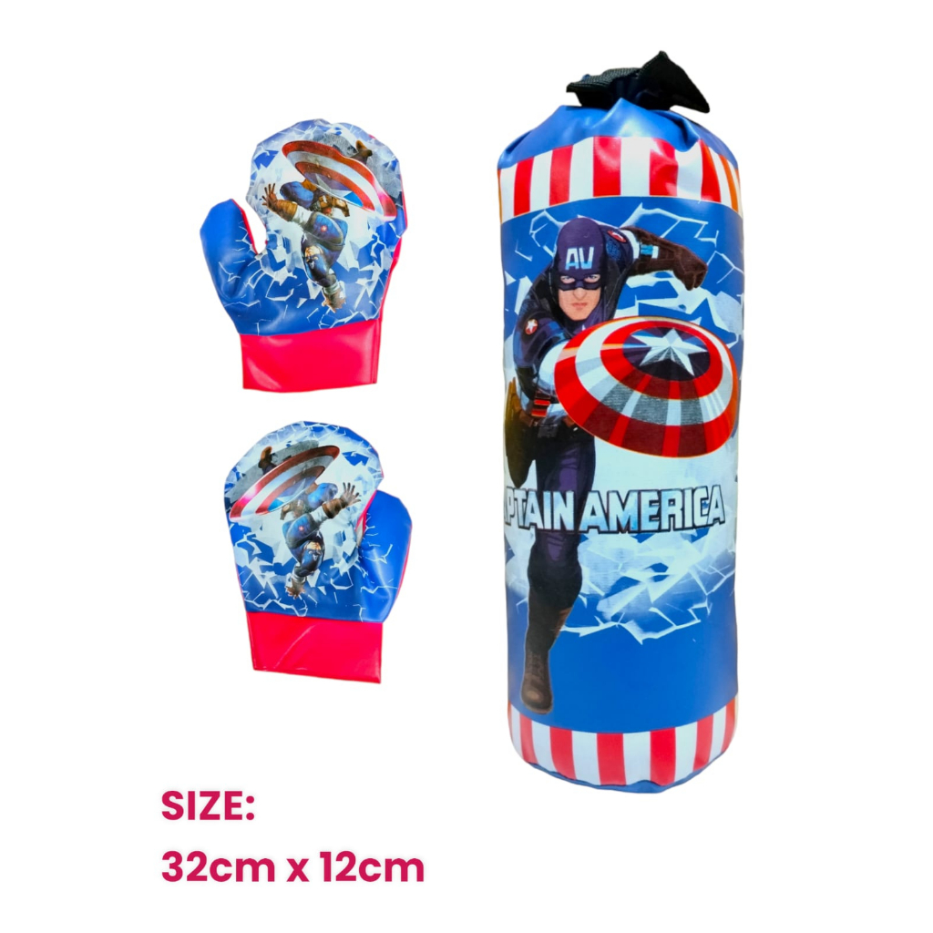 Mainan Samsak Tinju Boxing Set Sarung Tinju Anak Laki Laki Captain America / Spiderman