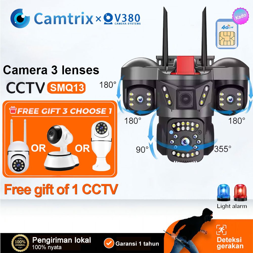 1 Get 1 Camtrix v380pro 3 lensa 18MP HD CCTV using wireless WiFi or 4G SIM Connect Outdoor waterproof night vision Ca