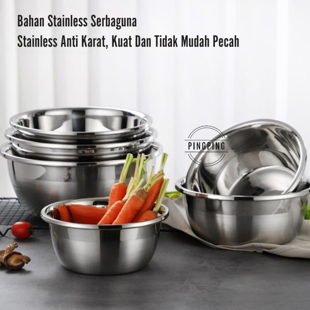 Baskom Set Stainless Tebal SET 6PCS SUS 304 20CM, 22CM, 24CM, 26CM, 28CM, 30CM Wadah Cuci Beras Buah Sayur / Set Baskom Mangkuk
