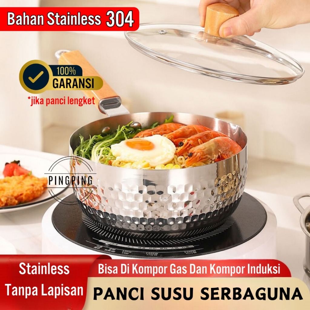Panci Stainless steel SUS 304 Anti Lengket / Panci Susu Stainless Steel SUS 304 / Panci Susu ukuran 18 cm dan 20 cm Dengan Tutup