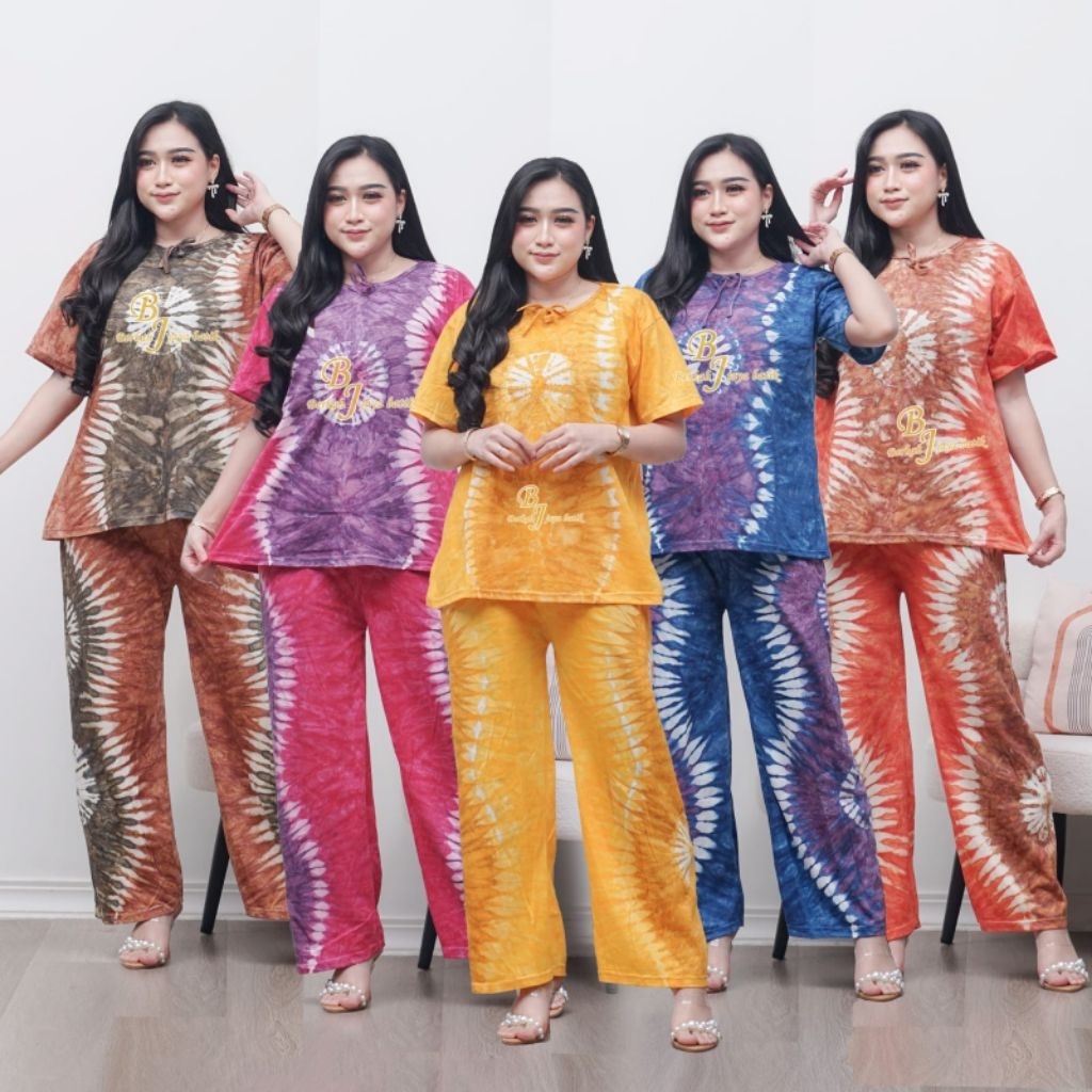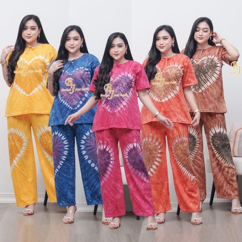 Set Wanita Bahan Kaos Setelan Celana Panjang Kulot Piyama Lengan Pendek Kekinian