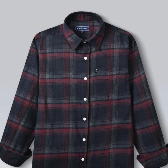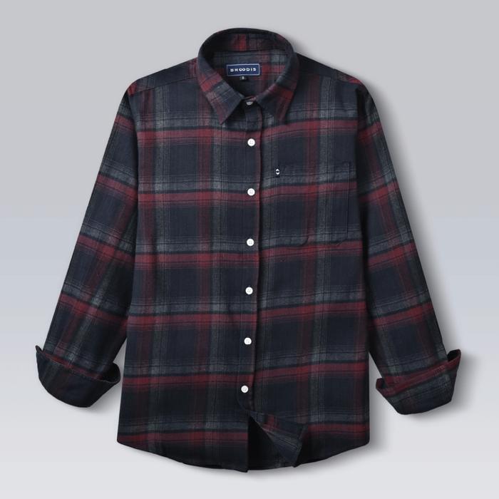 Broodis Kemeja Flannel Dark Grodig Lengan Panjang Kantong Pria Casual Kemeja Pria Lengan Panjang