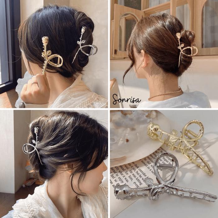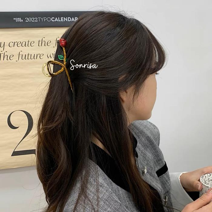 Jepitan Rambut Motif Bunga Mawar Retro / Jepitan Korea Aesthetic / Jepitan Rambut Besi / Korean Hair Claw