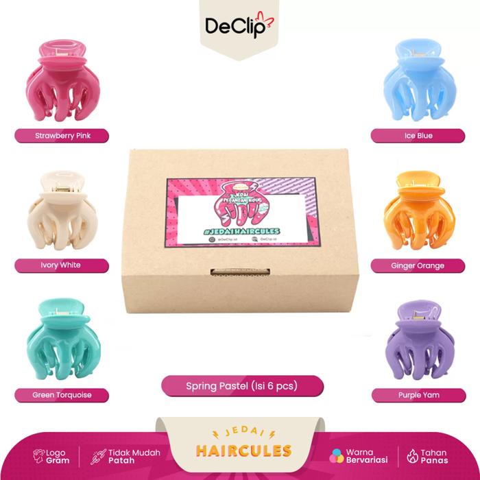 Jedai Haircules Declip Original Gigi 5 ukuran 5cm Warna Pastel Jepit Rambut 6 pcs